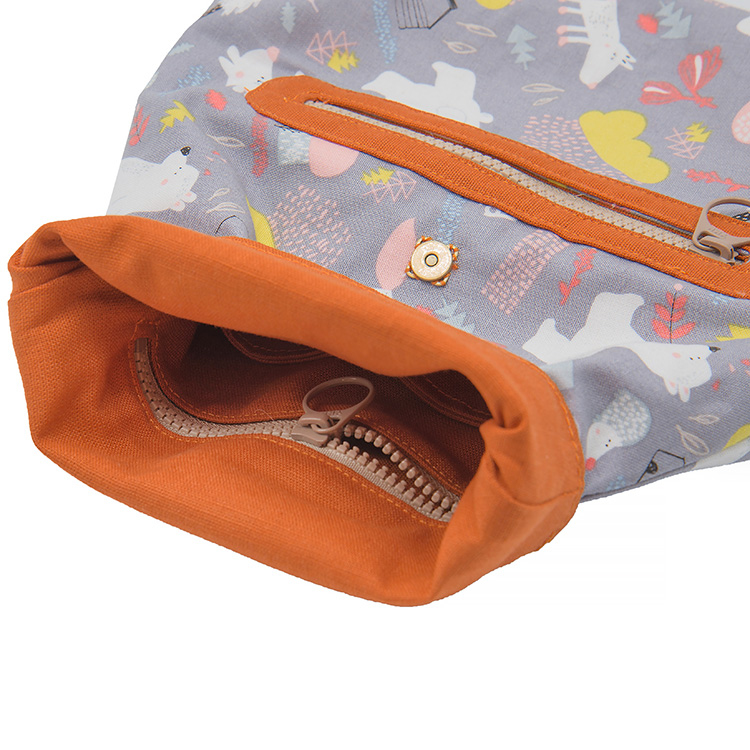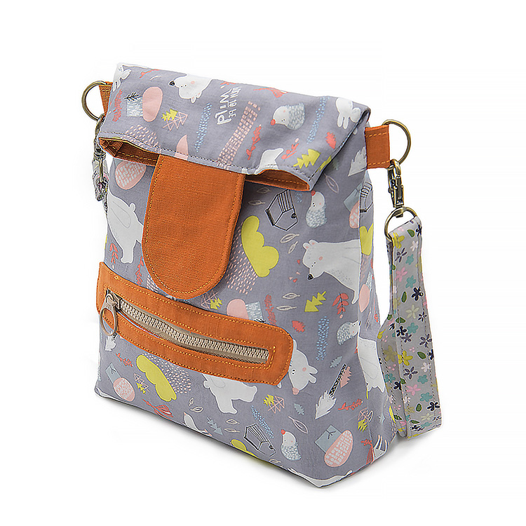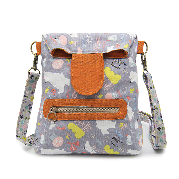 而不同於常見的織帶,這次運用印花布作為背帶,背負起來也有裝飾的效果。