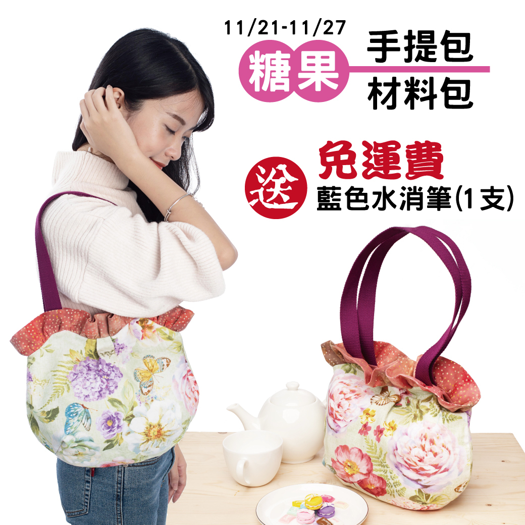 上下起伏的袋口設計、再搭配荷葉邊的打褶,讓常見的手提袋有了不一樣的面貌。與圓弧袋身結合後,整個包款就像是糖果一般,有看出來嗎?