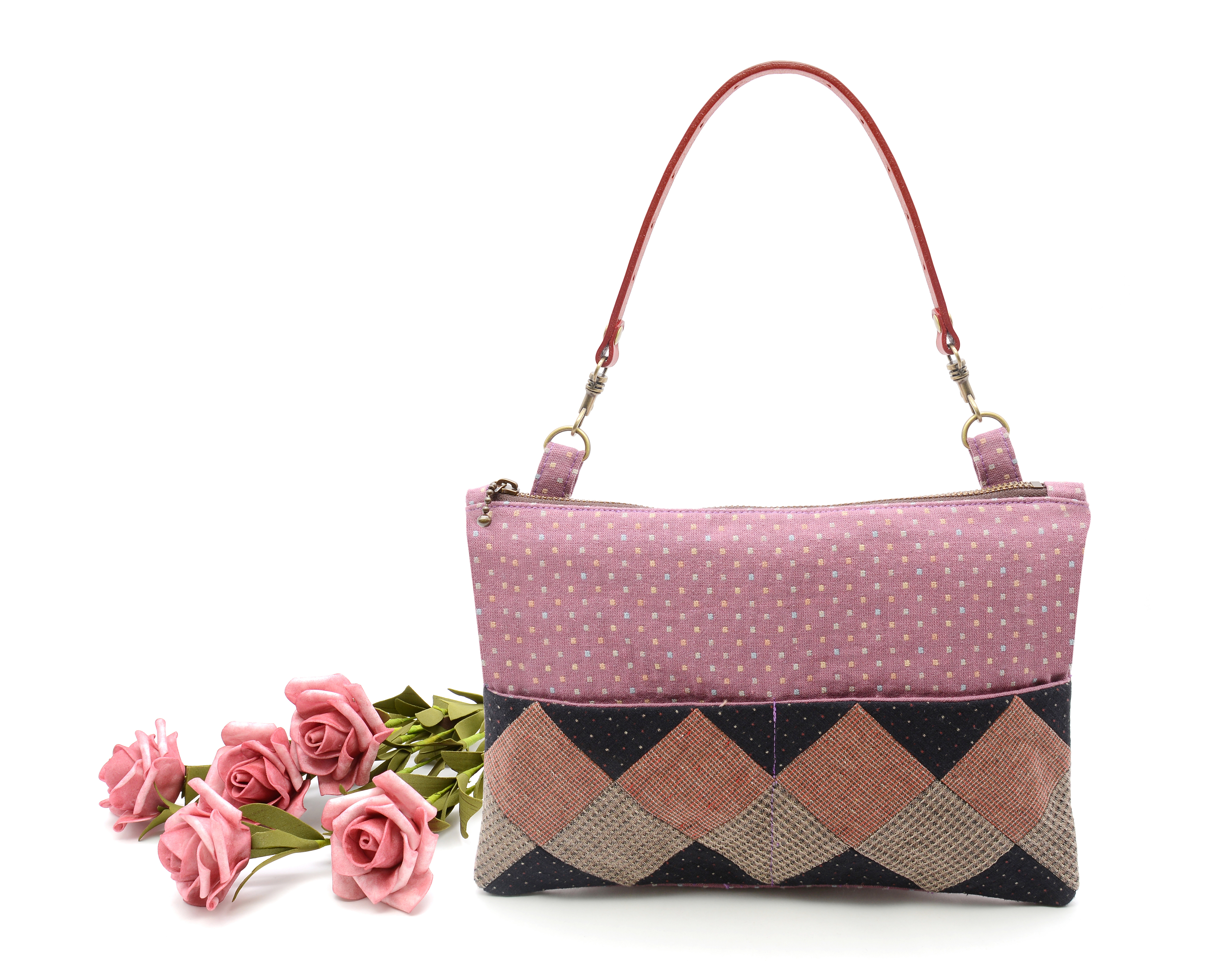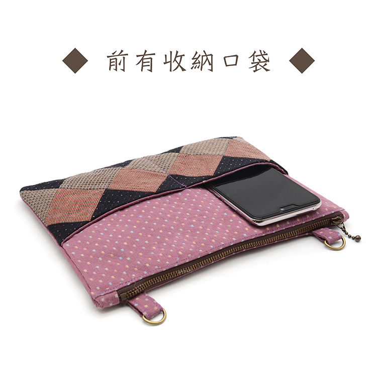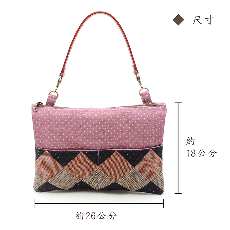 大容量袋身:拼布圖案除了裝飾,還能作為外口袋,加上原本的拉鍊袋身,增加更多收納空間。