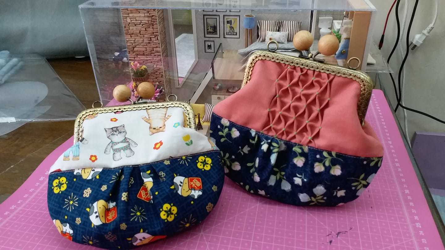 每次的材料包都可以有新的學習,作者完成最新款式的「皺摺口金包」,又用可愛的貓咪棉布完成另一個可愛版的口金喔!