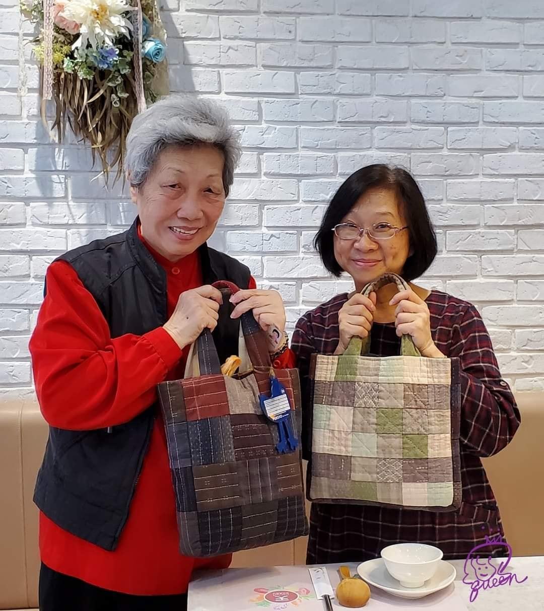 作者用羽織的先染布塊做成兩個簡約的拼布手提包,利用色塊顏色的排列將拼布包最美好的樣貌呈現出來。