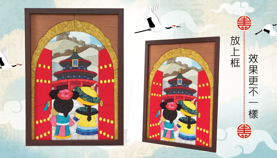 這次3d立體拼布,是大幅的,所以不能使用超商取貨,敬請見諒,這次,將中國的傳統建築與服裝設計到作品裡面,透過手作時光機,穿越古今,將時光停留在這個屬於妳的片刻