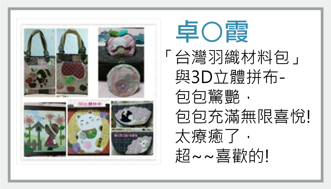 曾經玩過3d拼布畫的朋友,給予我們的回饋