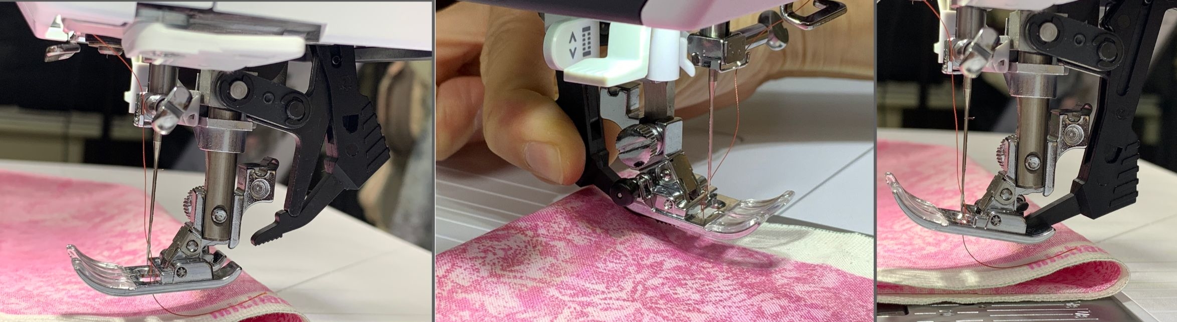 這台機器不是只有下方可以送布,上方Dual Feed (DF)也可以協助喔!上下一起,就可以避免布料對接時的拉扯,讓針趾更加完美,這台機器就是擁有雙送布系統