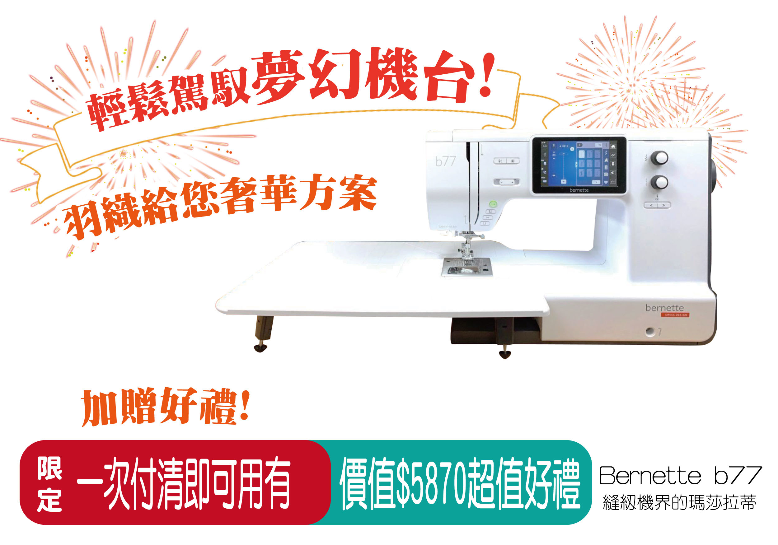 在羽織極力向立家縫紉機廠商爭取價格優惠,並得到伸興工業(立家縫紉)的支持,在雙方愉快的討論下,決定將bernette-b77價格從49,800,調降為38,900,價格雖然調降了但贈品不減唷!