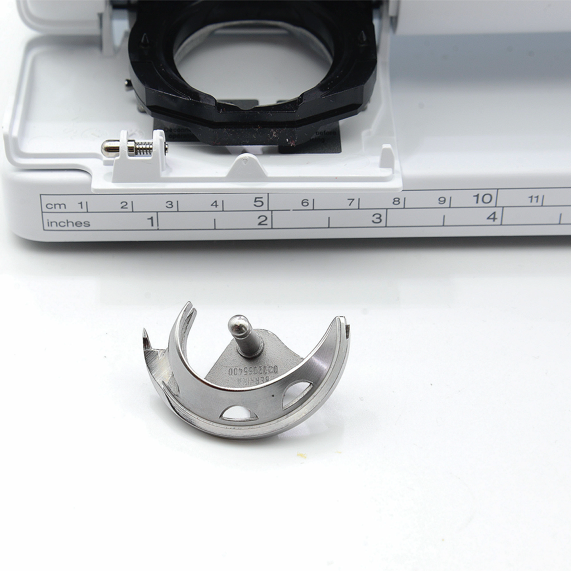 這個是b335底梭的大斧,主要功能是把上下線打結一個很重要的零件,在bernina這個東西,鑄壓成型,再去精密加工,避免組裝的誤差,讓每一次的車縫就是精緻