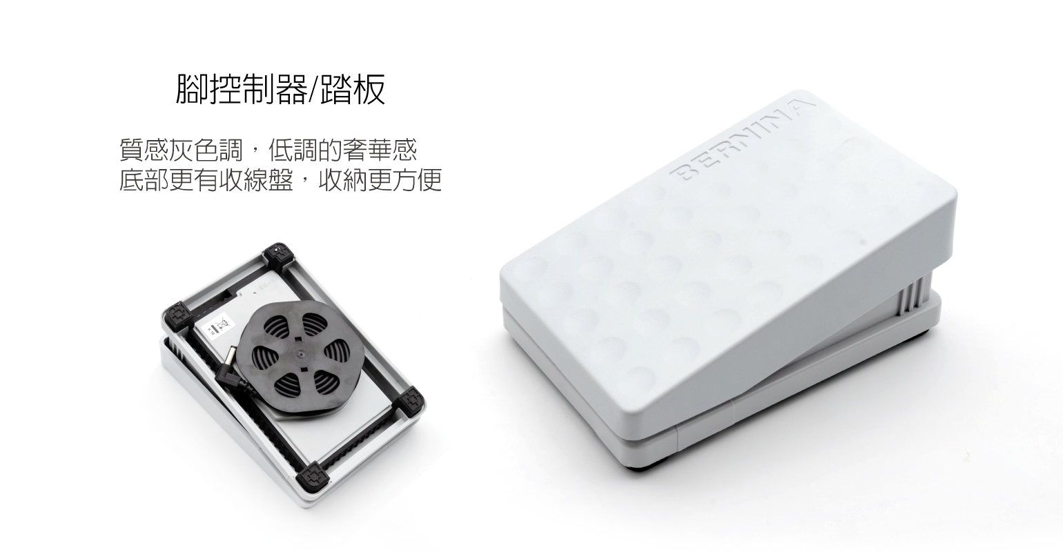 bernina在設計換壓布腳的時候,如果要換上其他要動用到整隻壓布腳卸下來的,他只要一隻手,就可以完成,不用在那邊轉螺絲,超級方便的囉!