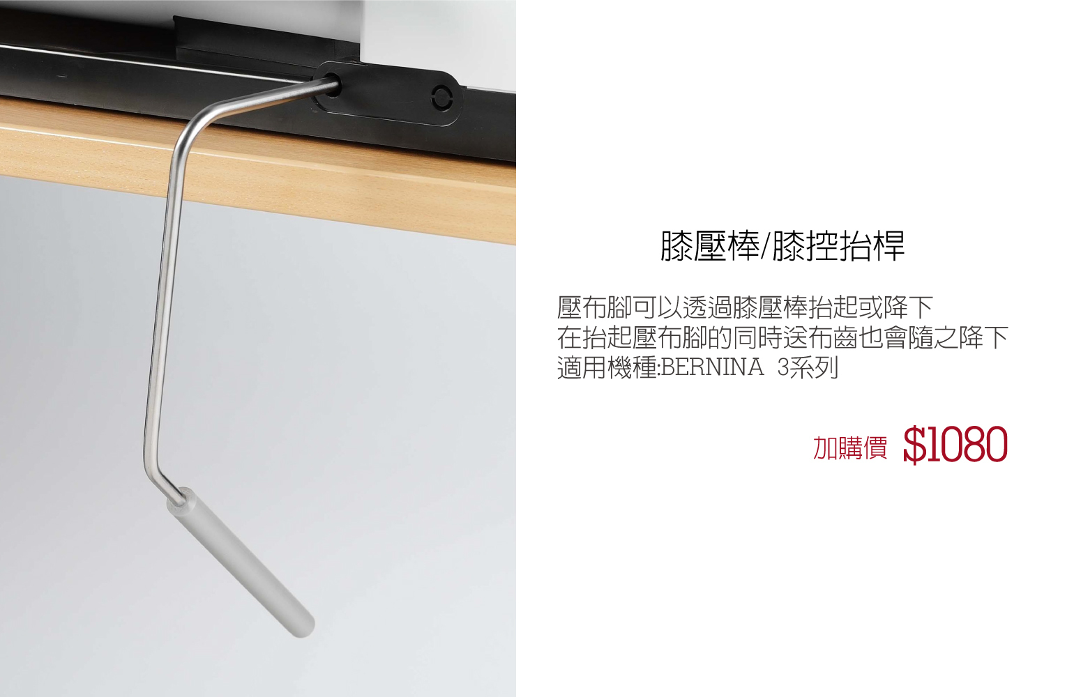 想要更便捷的縫紉,可另外加購膝壓桿