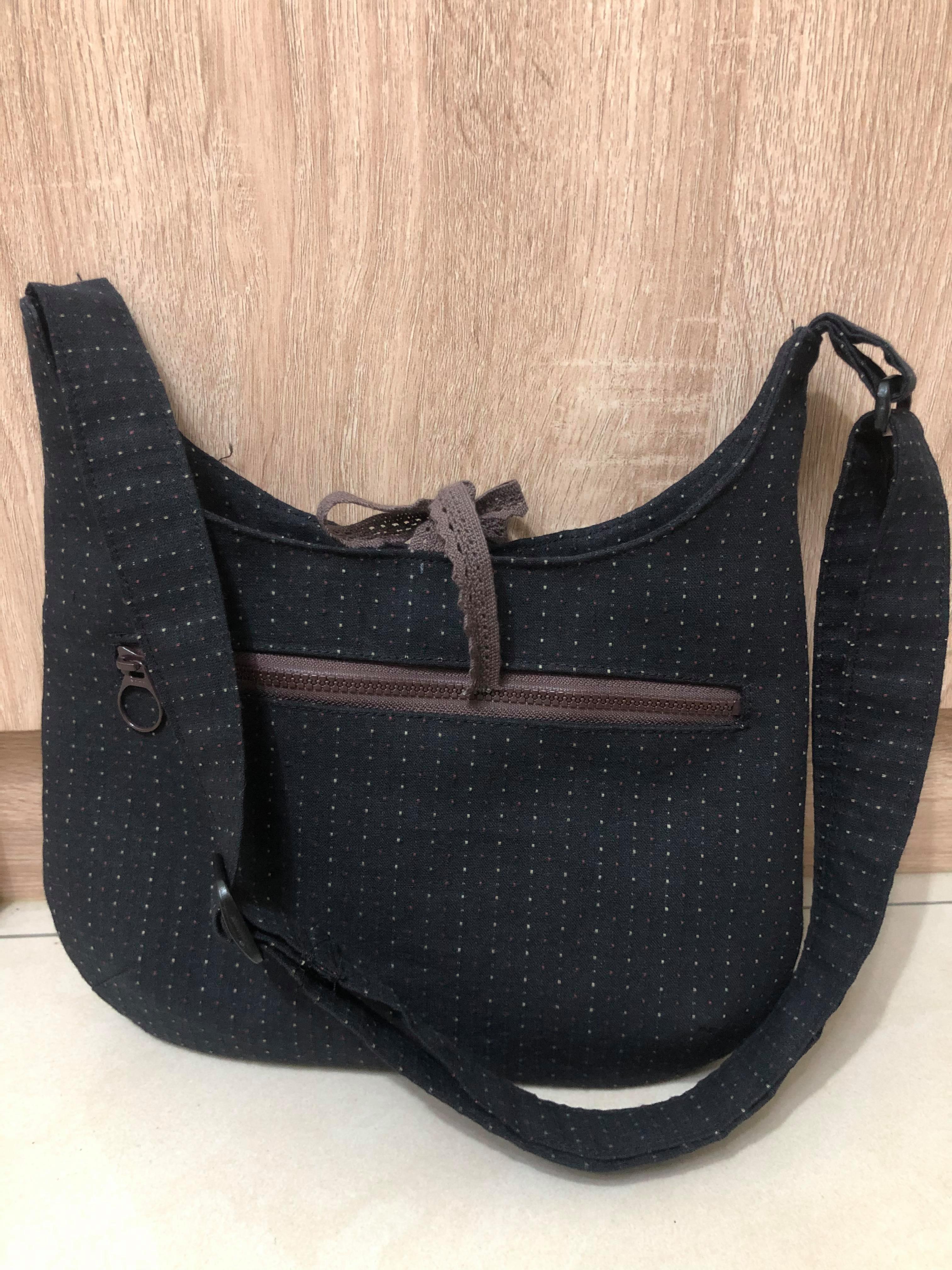 作者將先染布沈穩中帶有溫柔氣息的質感呈現地淋漓盡致,好喜歡作者巧妙地搭配上咖啡色的緞帶,和布料上的點點呼應,而拉鍊也是選用同色系的咖啡色拉鍊,平衡整個作品的溫柔色調,真的太棒了!