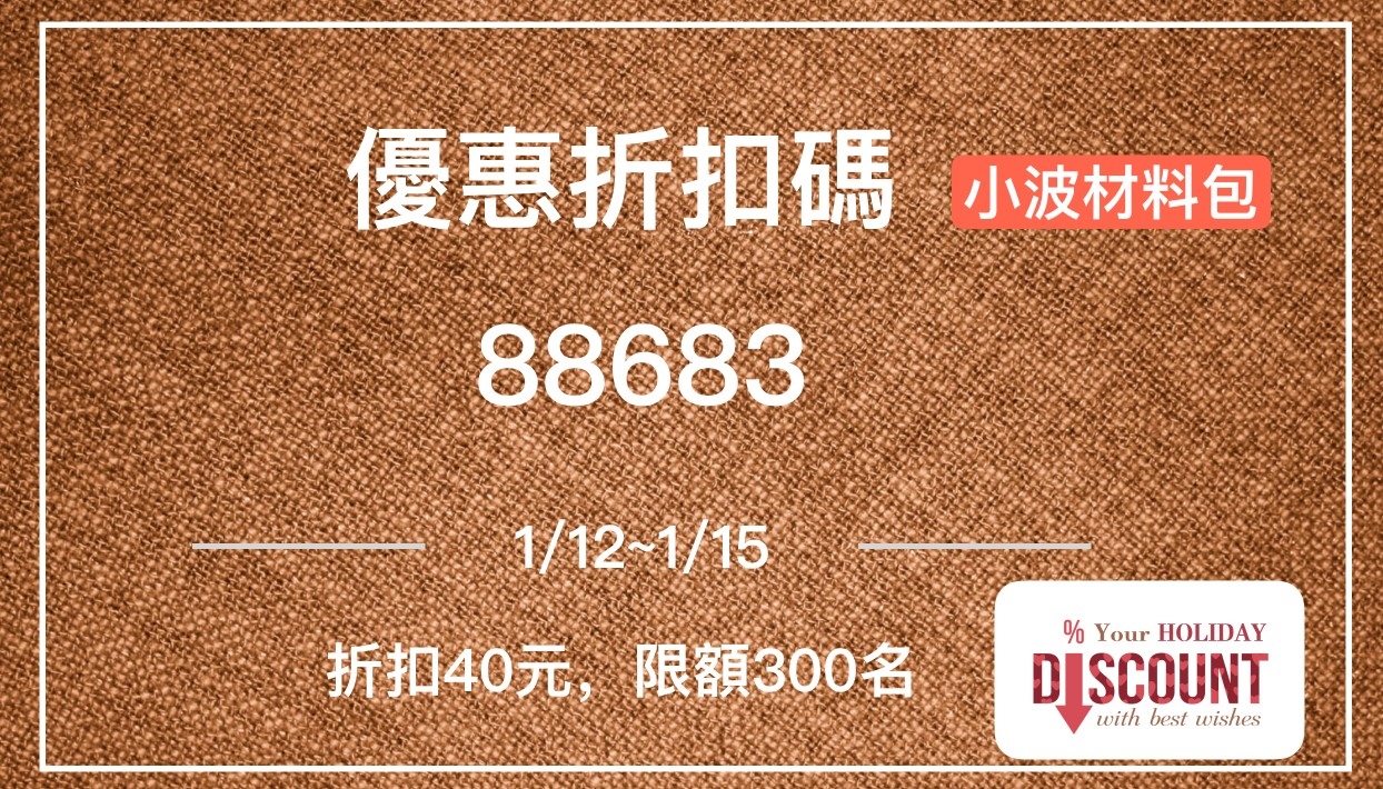 1.小波材料包專用,結帳時輸入折扣碼系統直接折抵