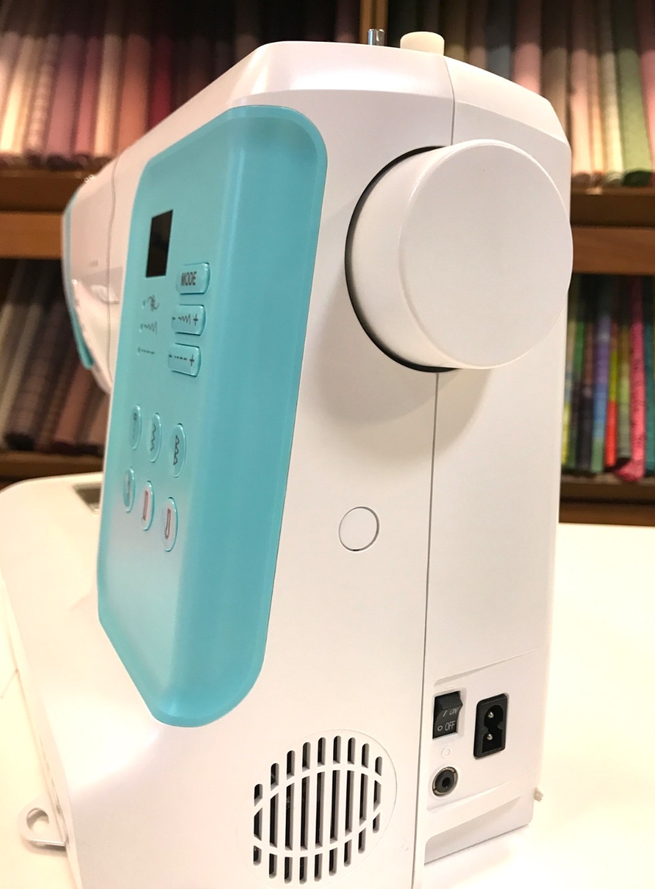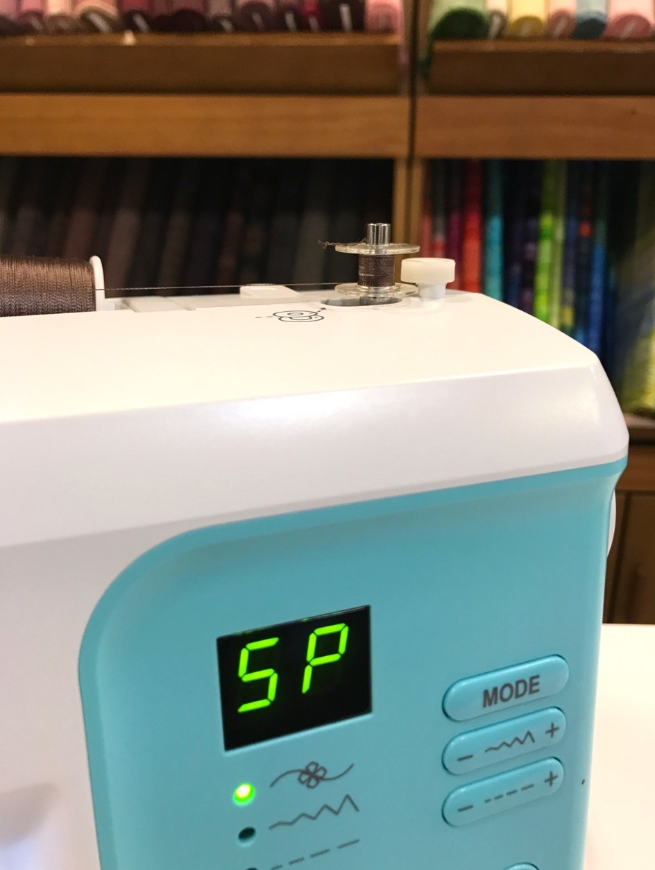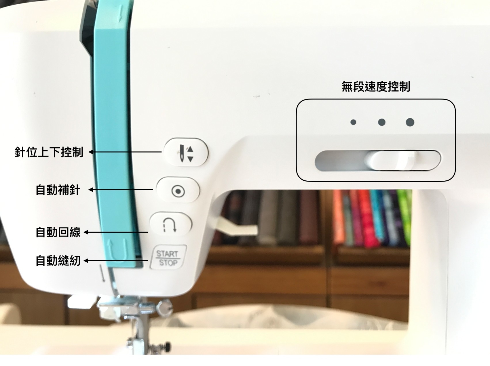 這台機器雖然是入門,但是他也是一台電腦用的縫紉機,他可同時支援腳踩,也可支援手按(自動縫紉),一個按鍵,他就會自己啟動囉,另外補針,自動回線這些標準配備依然都有,速度採取無段變速,不是只有以往三種速度的控制