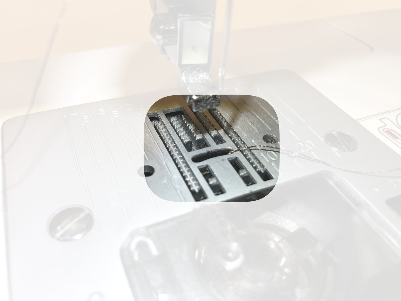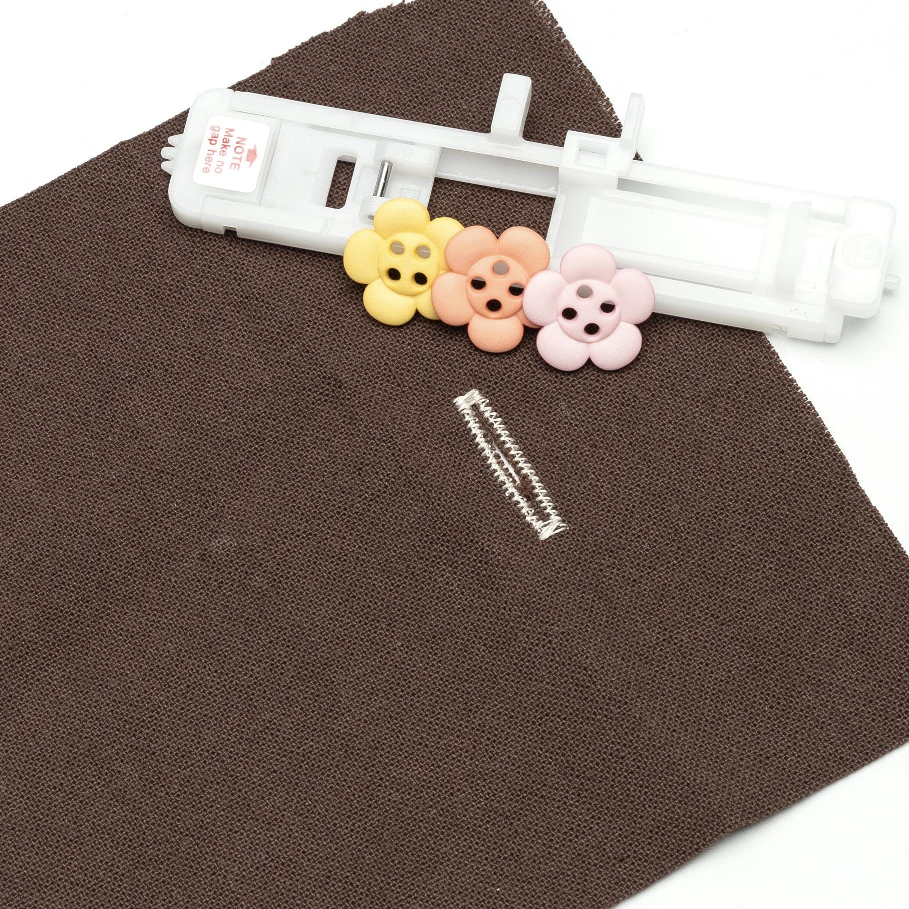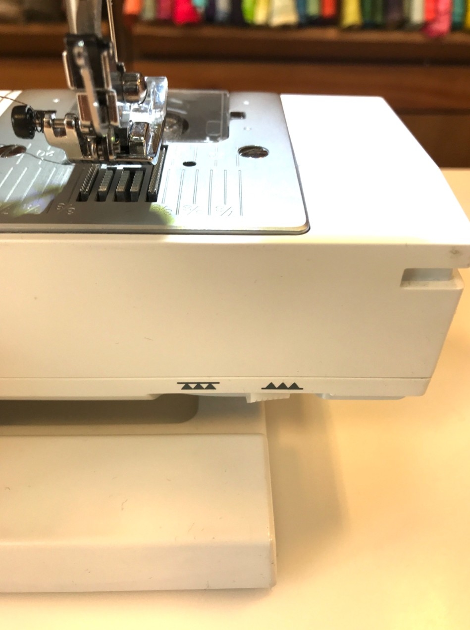 有時候想要讓機器幫你縫鈕釦嗎,撥一下這個開關,送布齒下降,選擇鋸齒花盤,就可以輕鬆縫鈕釦囉!也可以玩一下自由曲線