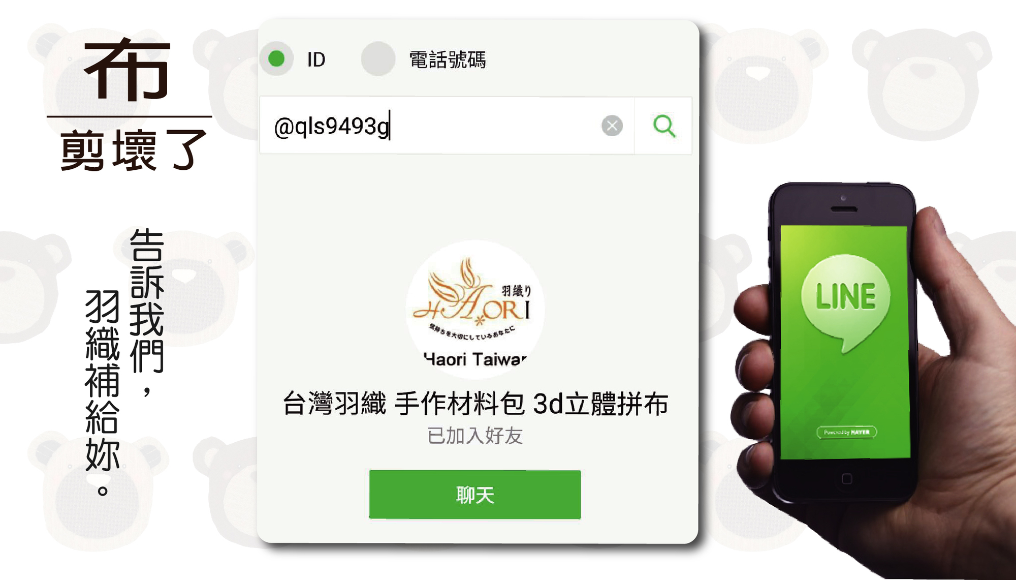 棉麻布料與先染布料的搭配,觸覺上的個性化增色這次推出兩個色系材料包,灰色的沈穩,米白的活潑,這次以熊熊為主軸,透過設計師的線條勾勒,將熊熊的可愛俏皮呈現在包包上面