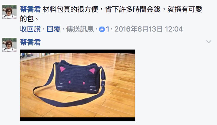 手作的樂趣來自於,每一個人因為手法不同,想法不同,所以做出來的成品每一個人都會不太一樣,在路上,下次遇到時說個hello,妳也是羽織手作材料包的愛好者啊~透過手作,去傳遞分享一份幸福與歡樂