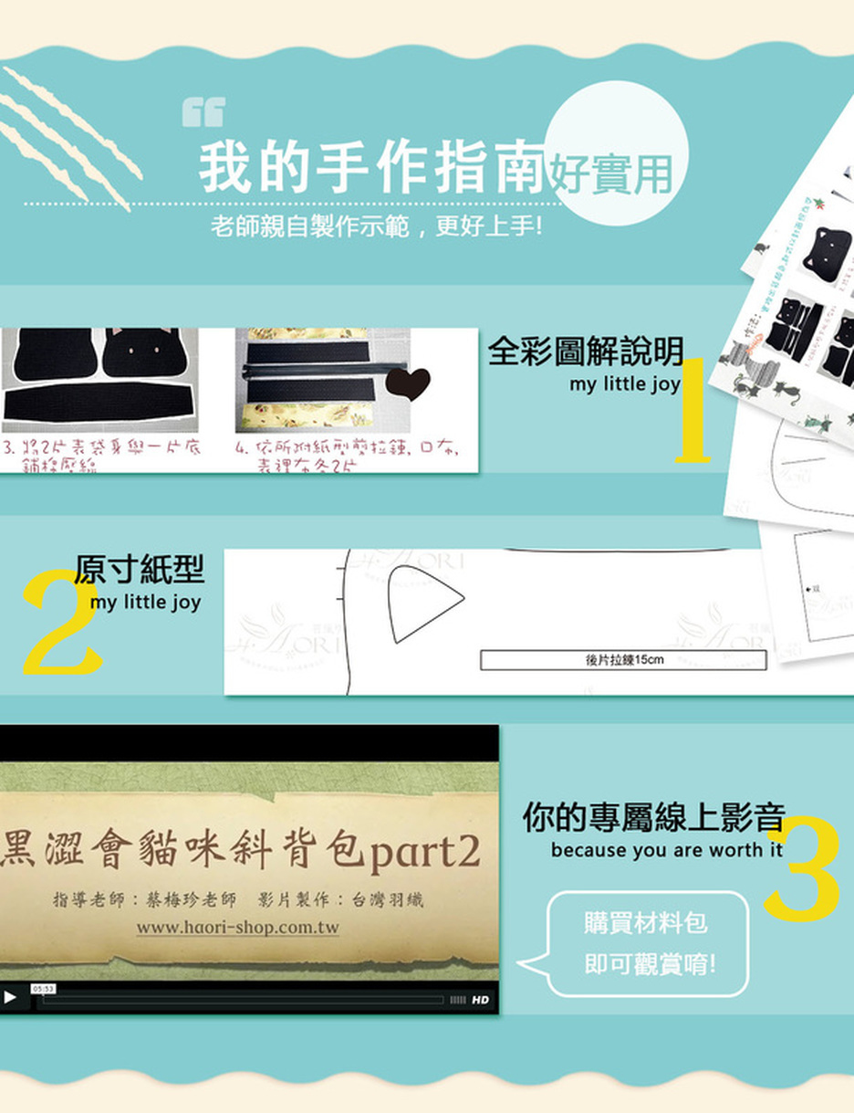 台灣羽織這兩年來,一直再精進材料包的設計款式,也錄製了『線上影音』,為的是什麼,就是希望妳真的想要玩手作,可以更輕易,透過科技,在家裡面也可以學習手作