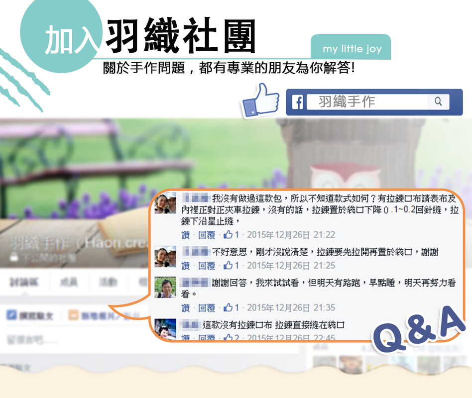 玩手作的過程,很多時候我們都是一個人靜靜的縫製,但是,試想一下,若有一群人在世界各地陪伴著你,像家人一樣鼓勵著你,當你遇到問題,有人可以詢問,也可以在社團裡面與朋友交流,這種感覺,是不是很棒呢?