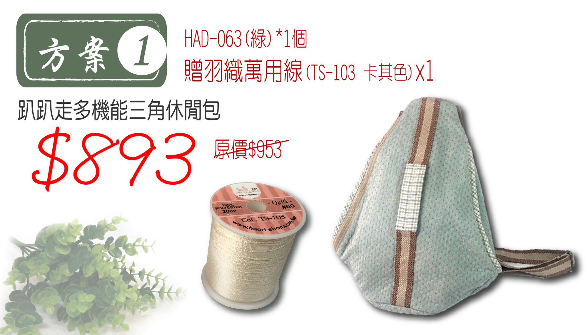 內容物:趴趴走多機能三角休閒包(綠)材料包*1組+贈品:萬用線卡其色*1顆