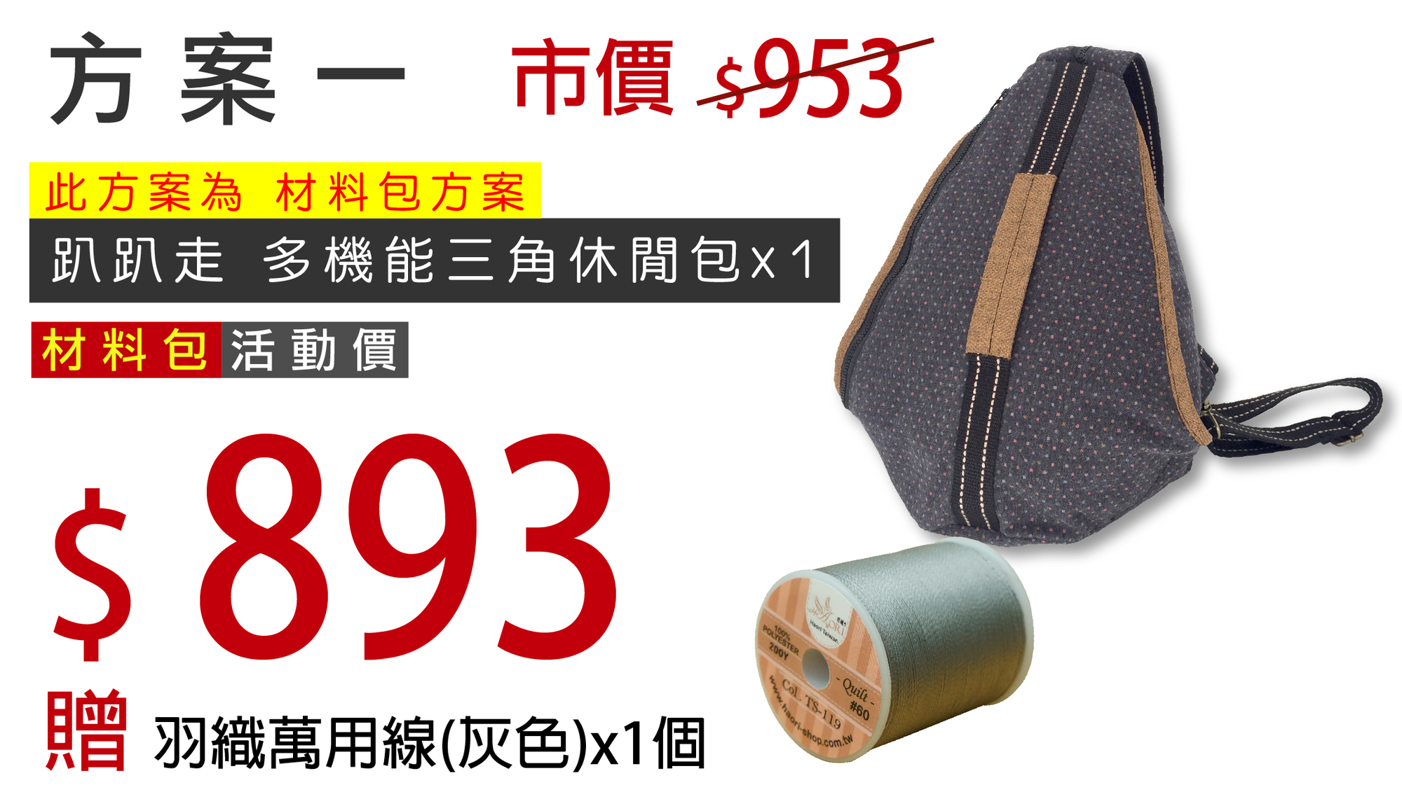 方案1=>內容物:趴趴走多機能三角包材料包*1組+萬用線(灰色)*1顆