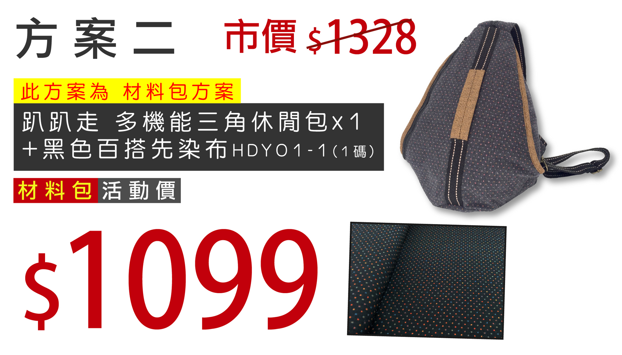 內容物:方案2=>內容物:趴趴走多機能三角包材料包*1組+黑色百搭先染布*1碼
