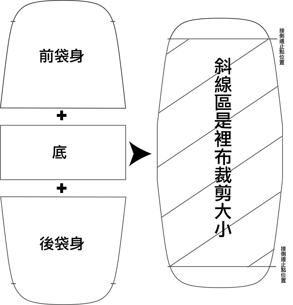 斜線區是裡布裁剪大小