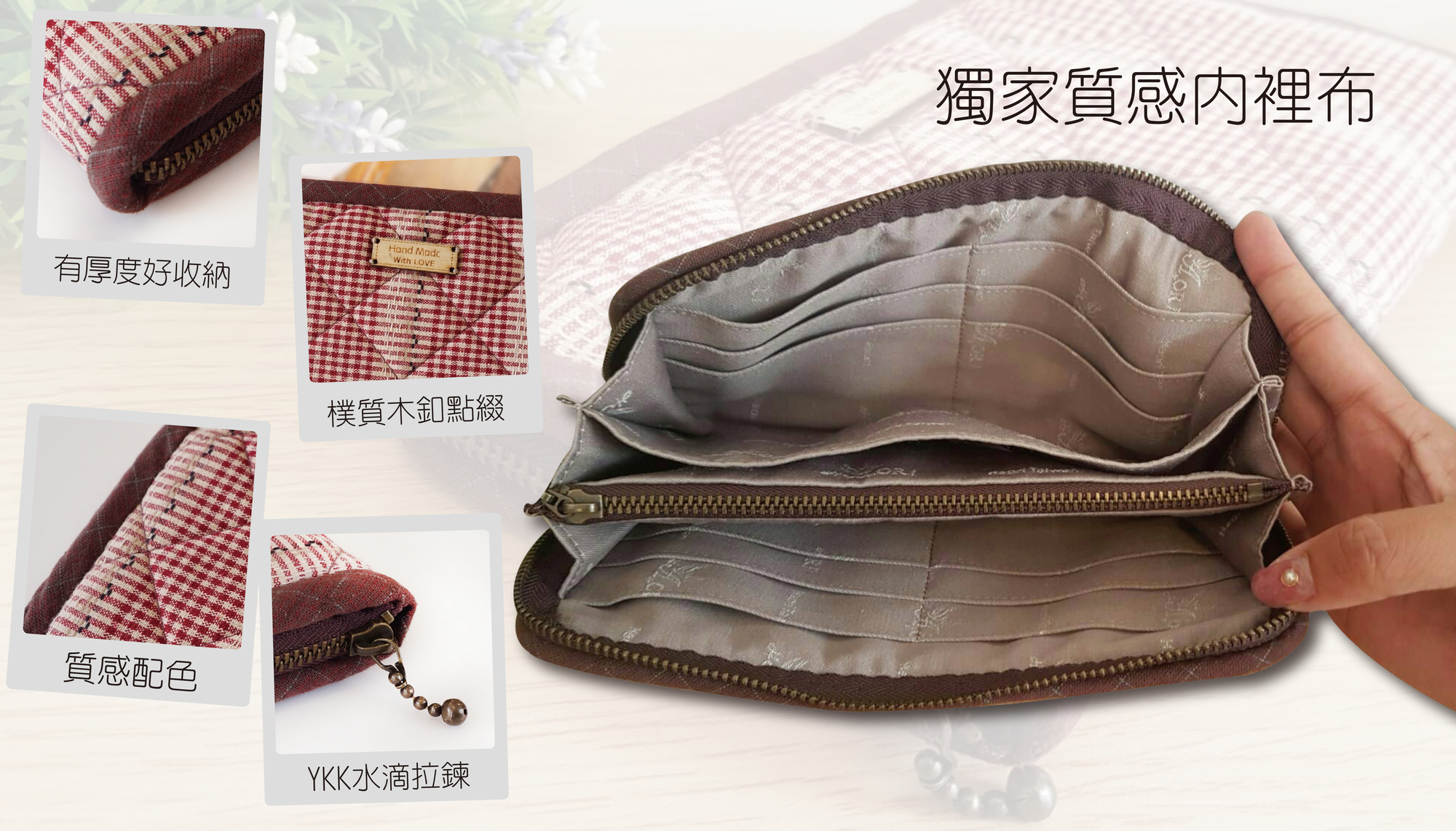 再造令人驚豔的經典,不僅單純是表面,而是由外而內經過時間的淬煉以紅色為基底,這次的『簡單愛。手作長夾』,在外觀加上條格紅色先染布料,內袋加上16個收納空間,外出時的使用,都顯得方便多一些,但重要的是,當妳完成之後,拿出去時,肯定會看到人們的目光會注視在這款長夾,也會烙印在別人的腦海裡,因為,這個在外面是不會看到的!因為簡單,所以愛,透過手作去傳遞一份幸福與歡樂!