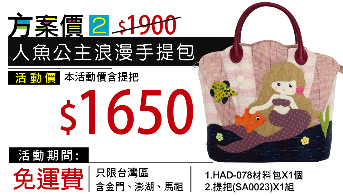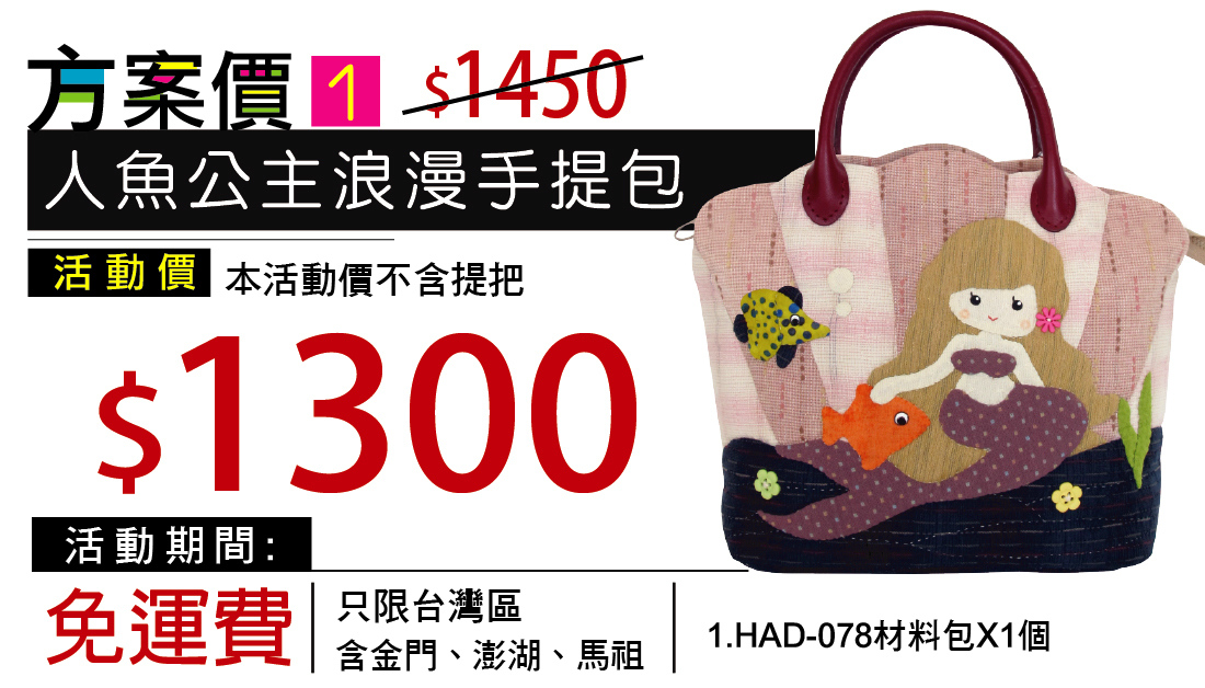 感謝您們的回饋,在這條路上,多虧有你們的協助幫忙,成就了羽織,我一直說,羽織不是一家100分的公司,但是我們朝那個方向邁進,看了介紹,接下來來介紹『人魚公主手提包』購買方案,妳可以選擇由我們搭配提把的方案,或是買沒有提把方案回去自己可以搭配!