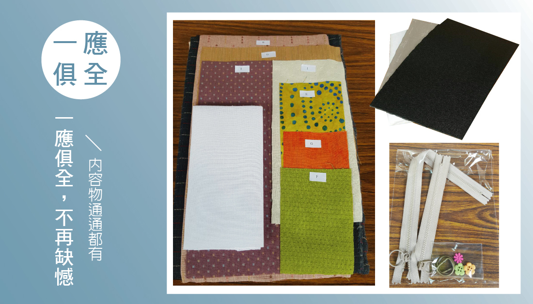材料包一包全都包,先染布,內裡布,鋪棉,拉鍊,通通有
