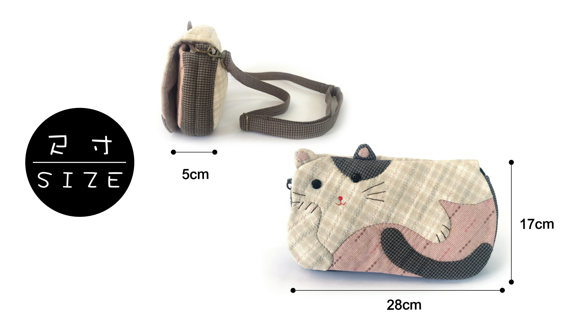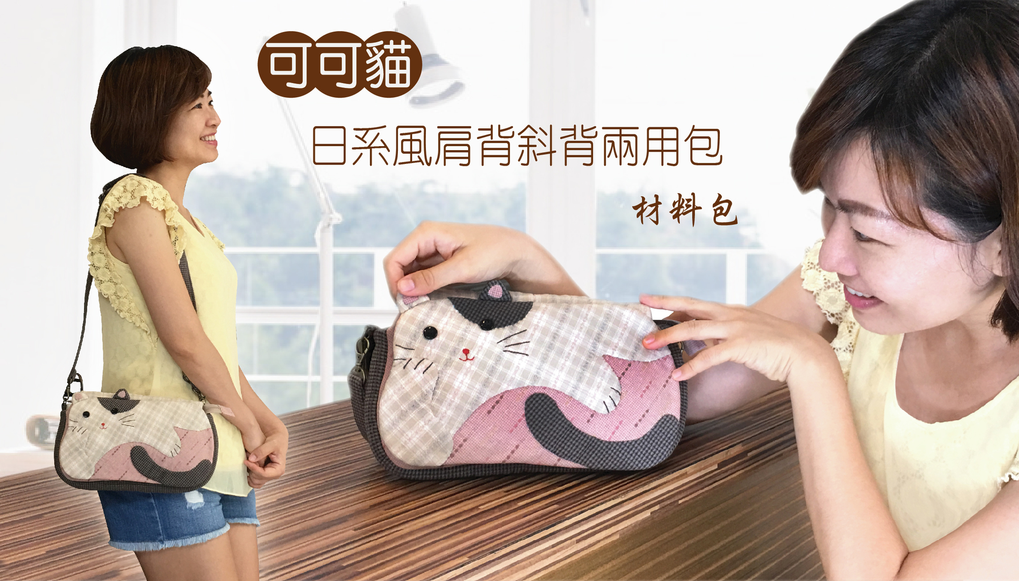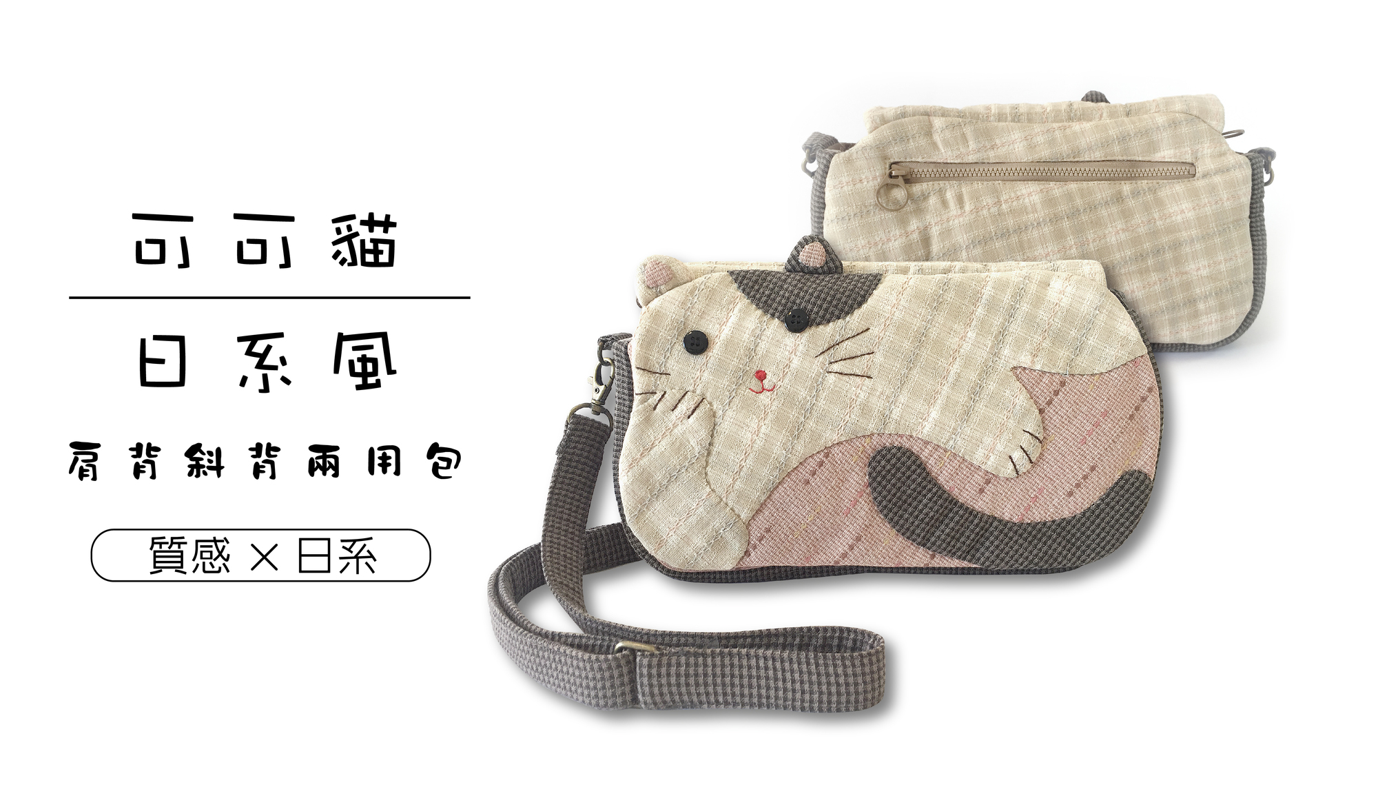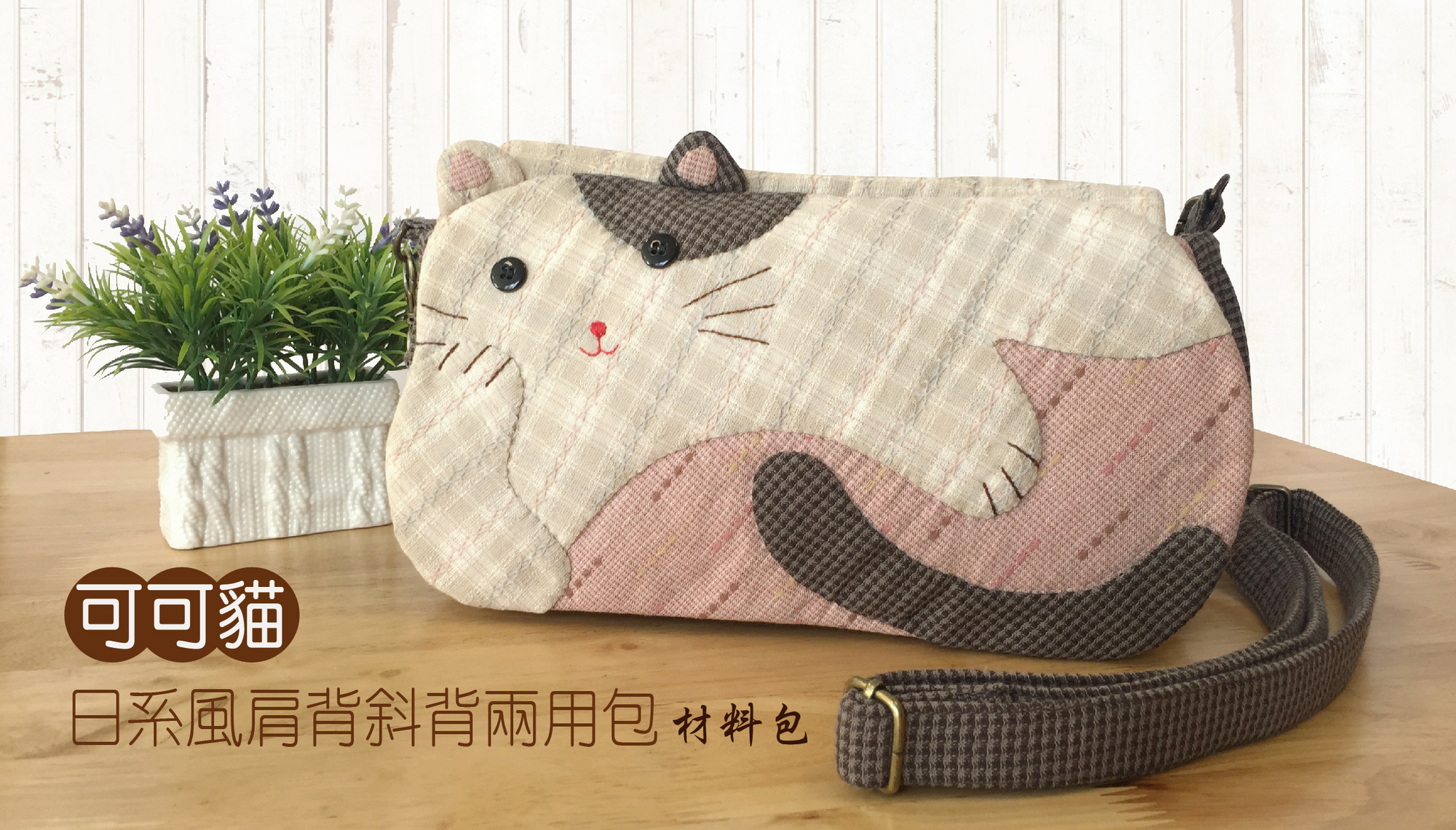 這次要新登場的是一款側背包,在表面設計,將貓咪慵懶,無憂無慮生活,放置在作品表面上,打開袋物時,在裡面加上貓咪最愛玩耍的夥伴,小小魚,前端運用圖像,讓整體袋物除了可愛,多了一分特殊感,整體的材料包走向就是可愛,典雅,卻不掩青春,背上吧!