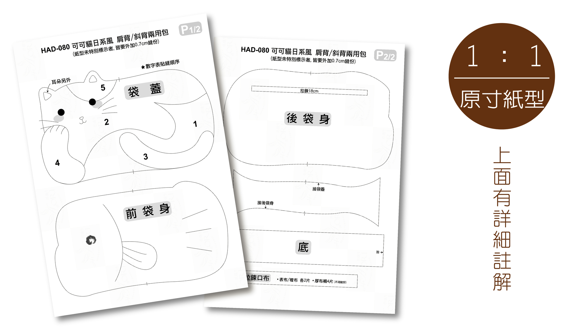 羽織材料包裡頭的紙型說明書,全部採用1:1紙型,並且不會將紙型重疊印製在一張紙上,為的就是讓妳更清楚知道,每一個紙型的用途與方向