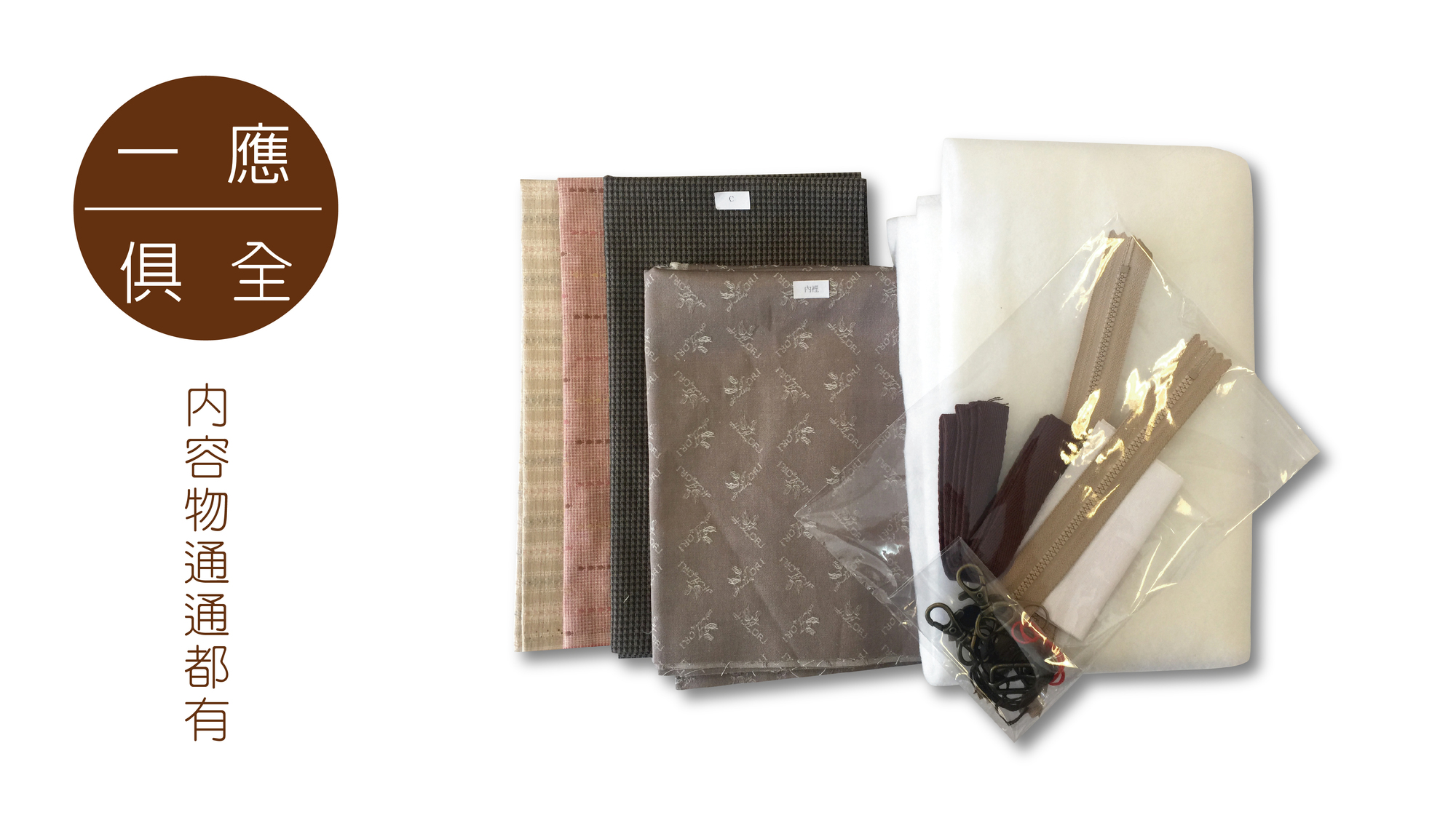 羽織的材料包裡面,所有的配件通通都會有,當你拿到的時候,就是完成的開始,我們要讓妳體驗手作的過程,再也不用四處奔波找材料,所以在材料包裡面,我們將所有的布料,配件都整理好了