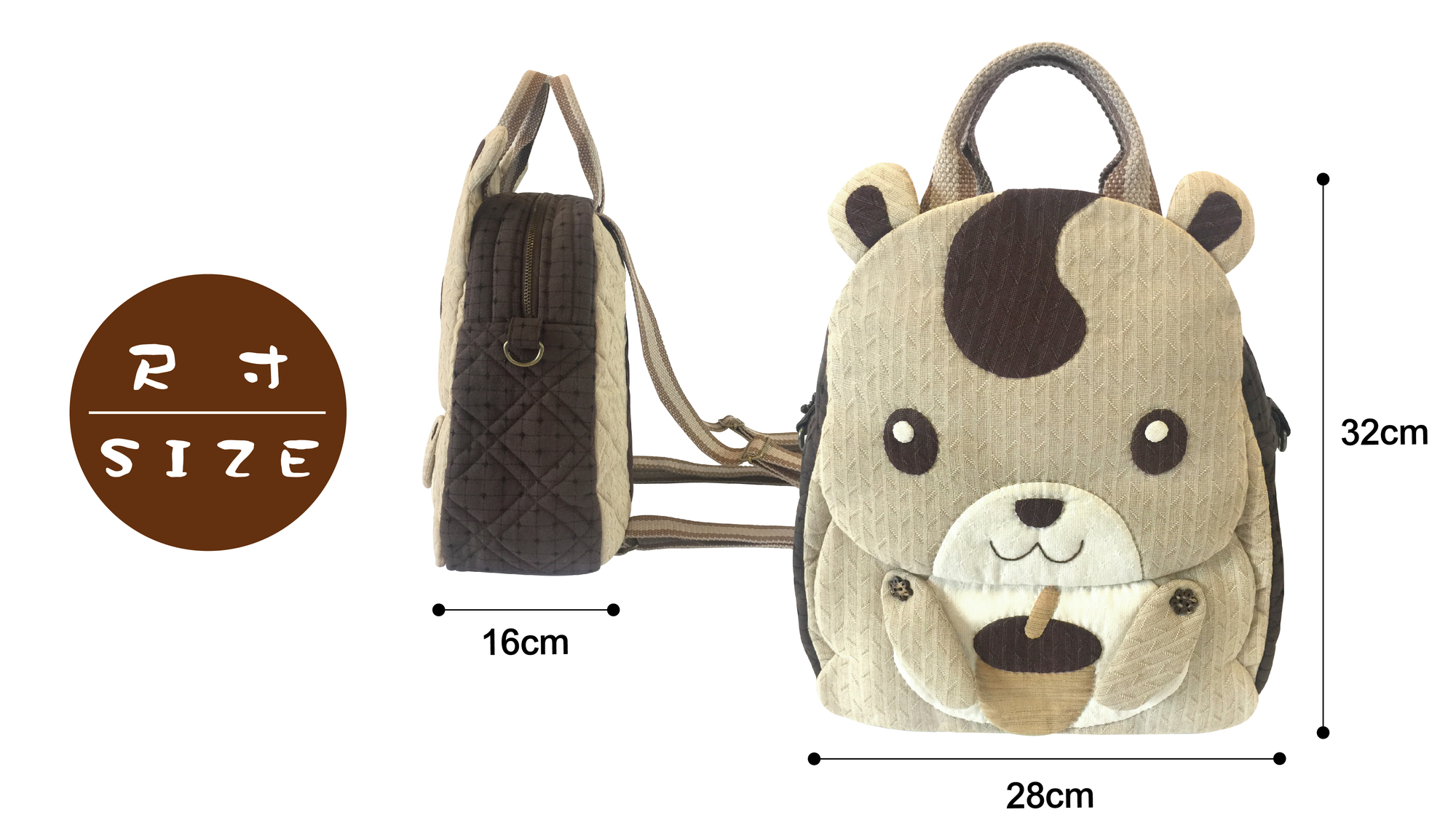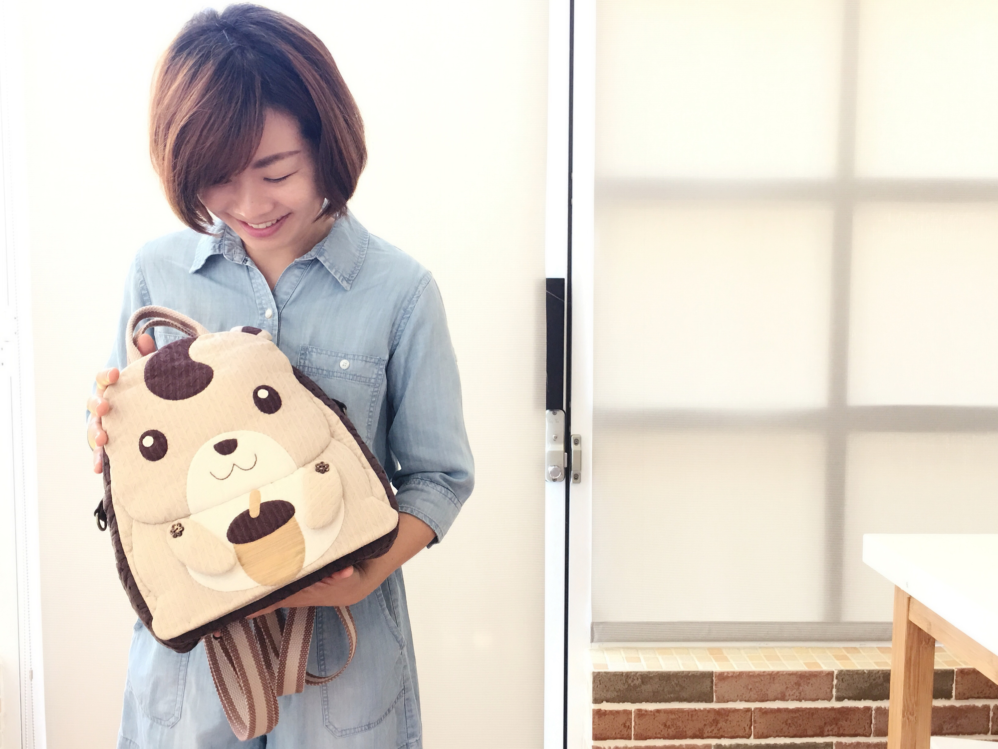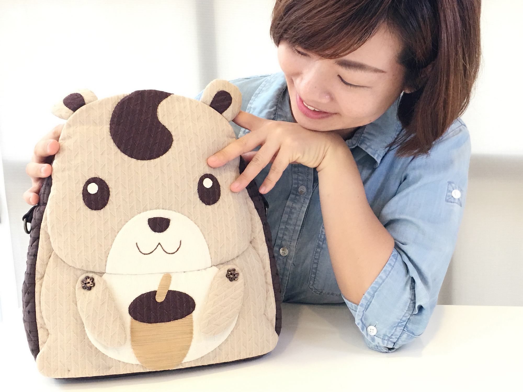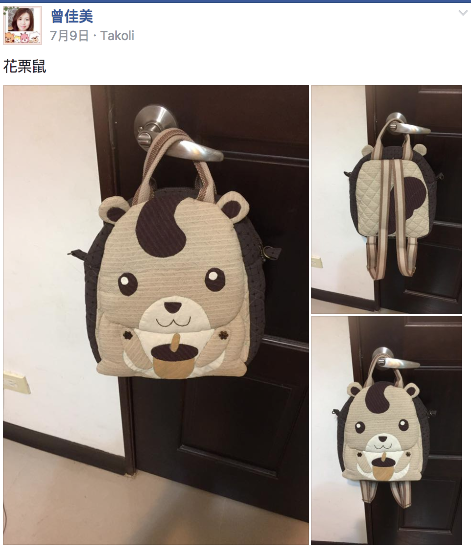 在袋身的圖案設計,將森林的好朋友~花栗鼠,天真可愛表情,放置在作品表面上。
