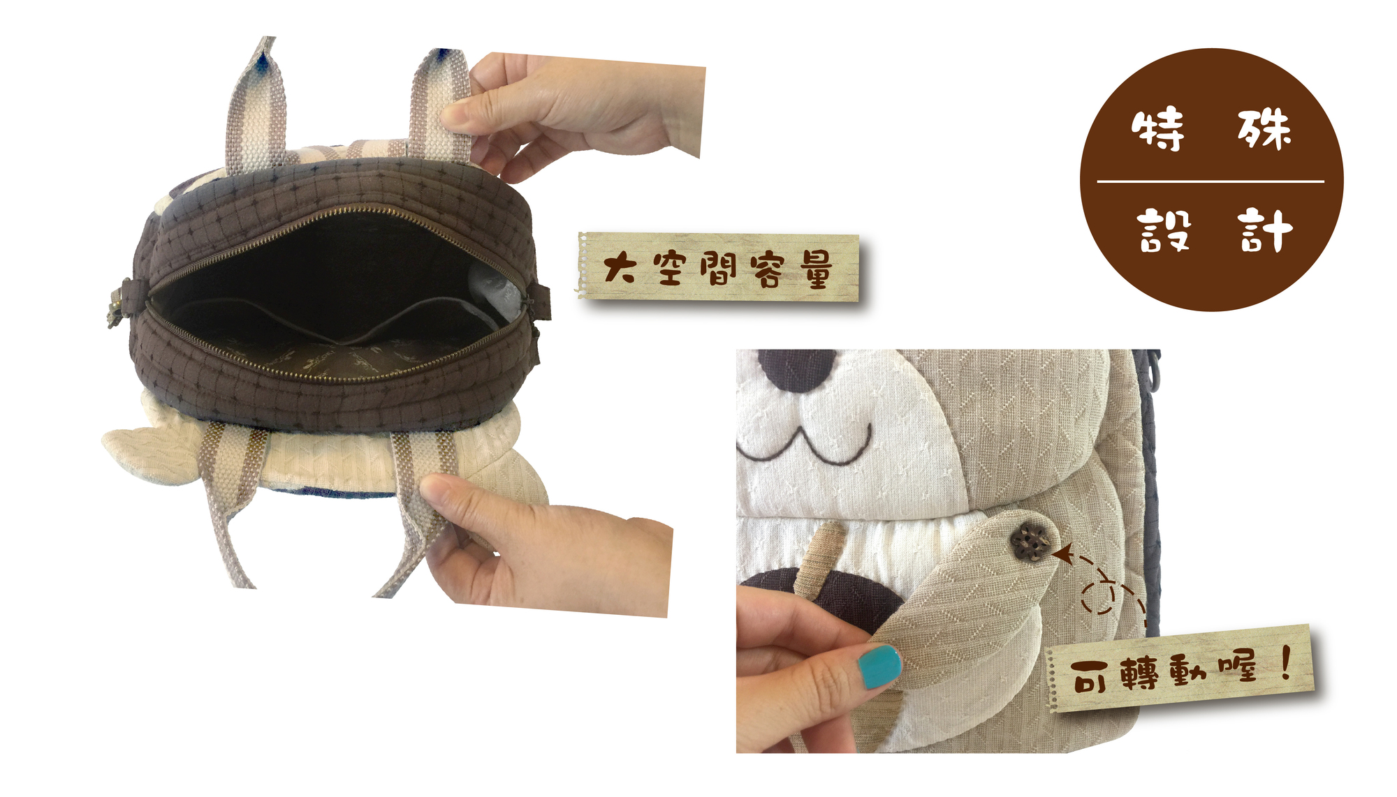 花栗鼠大大的頭,加上兩顆萌呆的雙眼,身體部分的小手,還設計是可活動式的。