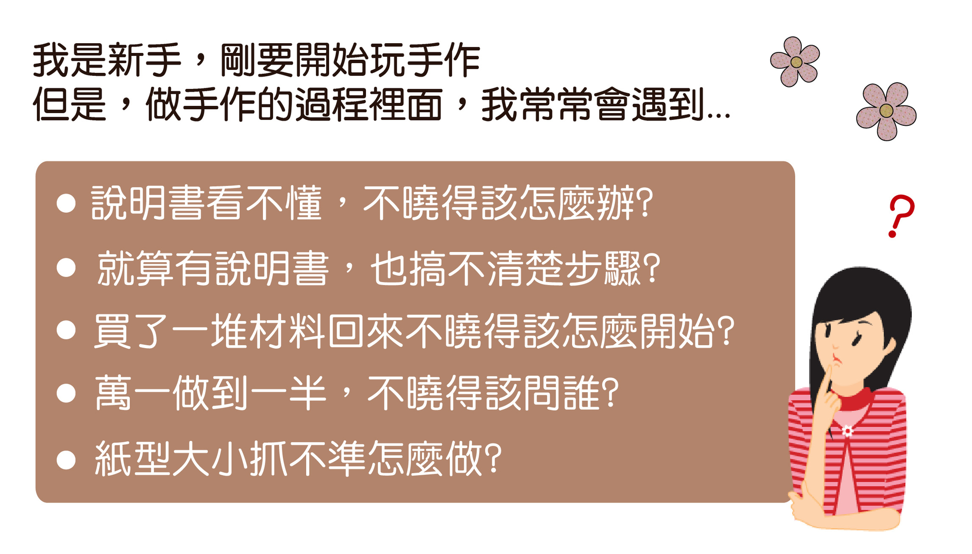在這邊我想要說,如果沒有開始動手做,絕對沒有完成的機會,材料包跟食物不一樣,他是沒有保存期限的,只要你願意動手做,那我們一定會協助你去完成