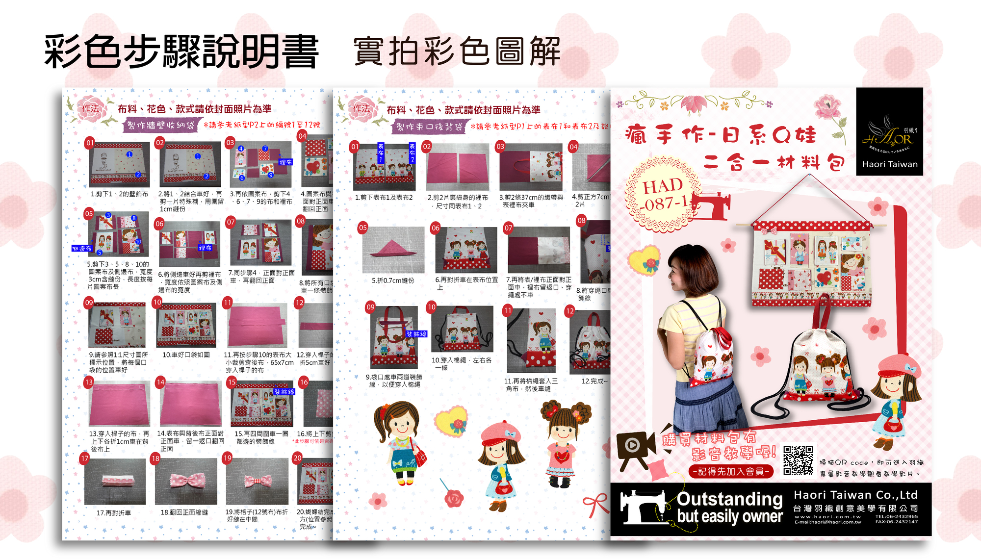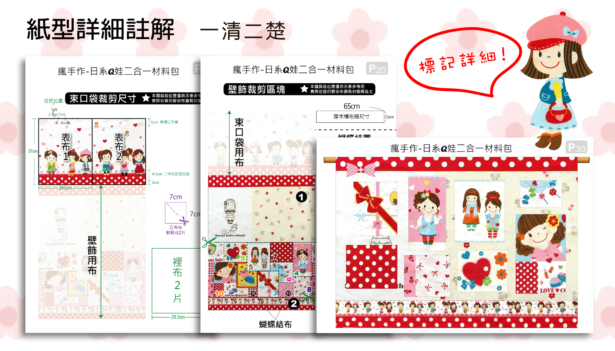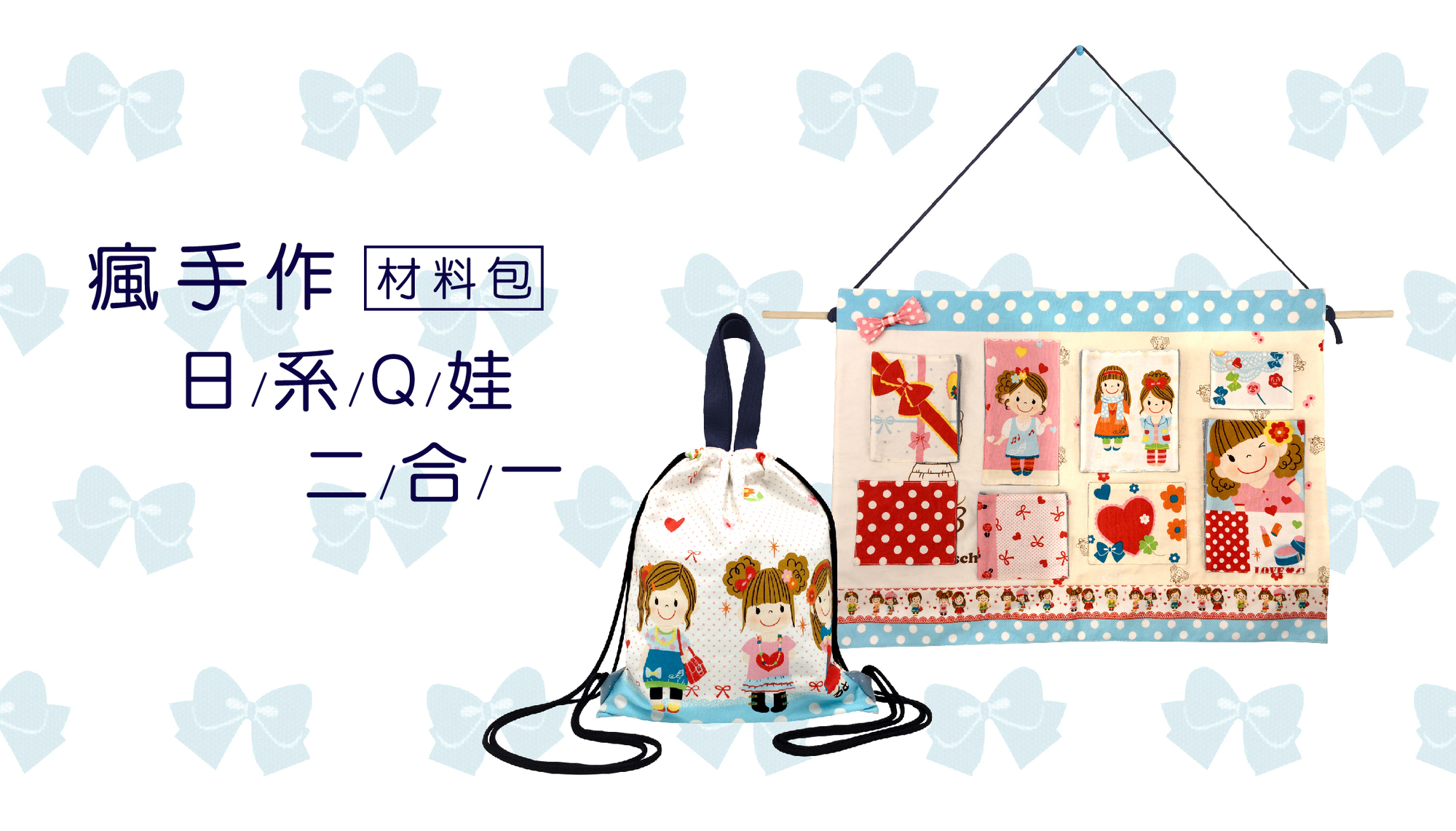 不同與以往,這次羽織推出這幾年第一次出現的圖案布的材料包,愛玩手作的妳,這次由居家到戶外,我們一次幫妳搭配好!愛上學的Q娃,愛逛街的Q娃,愛旅行的Q娃,在充滿可愛的布料外觀基礎下,對於我們設計的確是充滿著一個挑戰,因為一塊圖案布通常只能包包與壁飾二擇一,兩者很難兼具,但是,這次我們選擇了,給你兩者都要有!這次推出兩色系,可愛紅,典雅藍,不平凡的手作,不安逸的一份手作情!