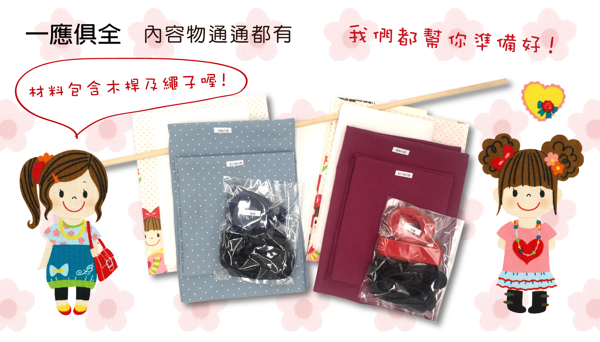 這次的材料包推出可愛紅,典雅藍,每一款材料包可以做一個外出包,與室內收納壁飾,由外到內,由內到外,均勻個性,一次搞定!