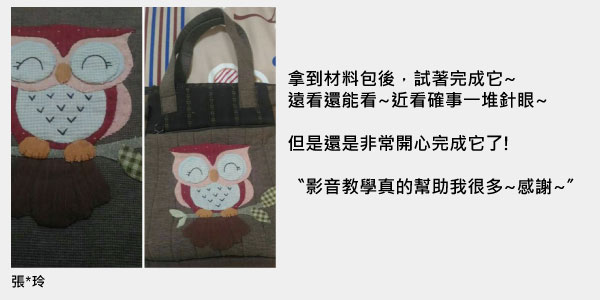 在這邊我想要說,如果沒有開始動手做,絕對沒有完成的機會,材料包跟食物不一樣,他是沒有保存期限的,只要你願意動手做,那我們一定會協助你去完成