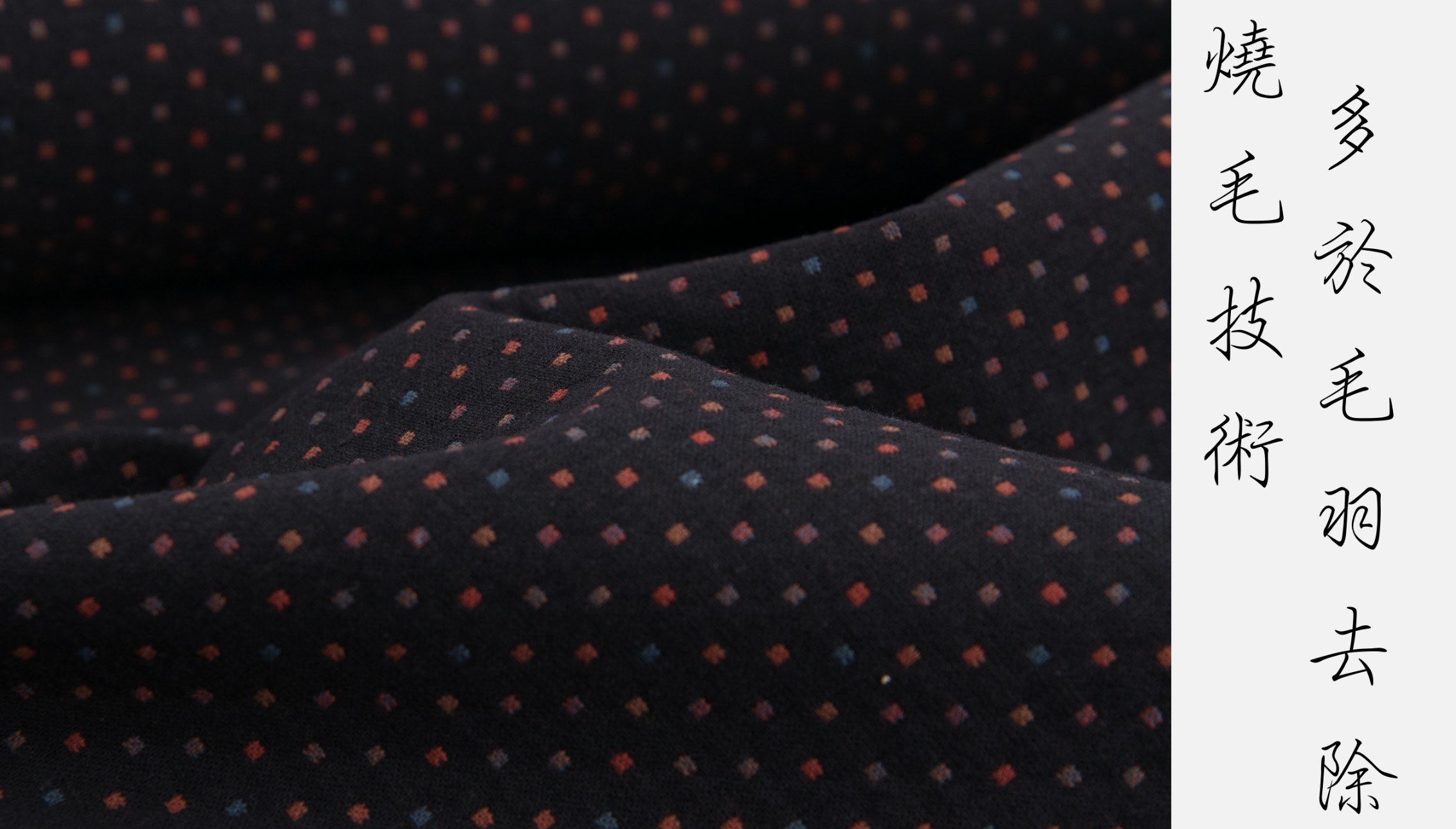 台灣羽織為了提升先染布料的質,所有的先染布料都會經過一道叫做燒毛技術,將布料上的毛羽清除,減少成品完成後,摩擦容易起毛球