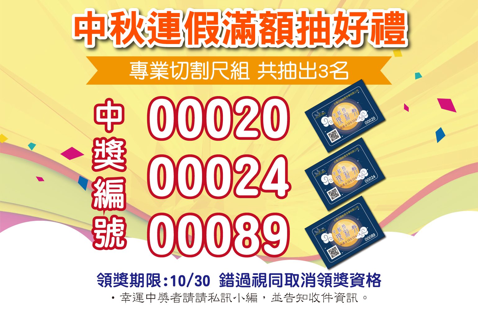 中秋連假期間的滿額活動抽獎