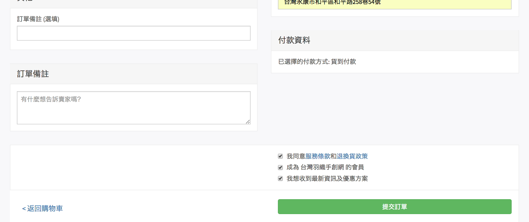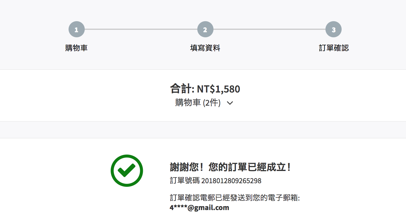 訂單完成同時要把訂單編號記錄下來喔!爾後要查詢,登入會員你就可以直接查詢了