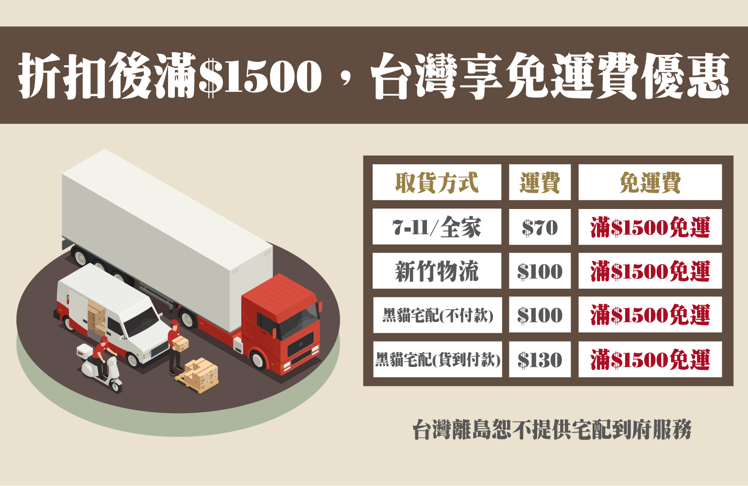 台灣離島恕不提供宅配服務