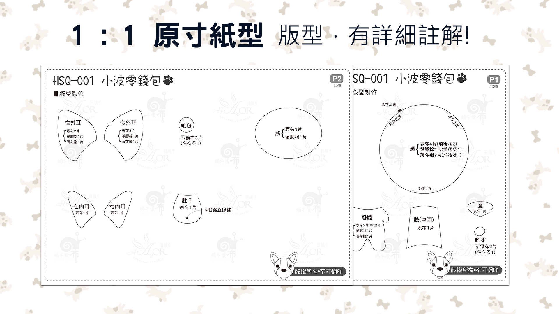 再做手作的過程,拿到紙型,但是不曉得該怎麼去放大縮小,沒問題,羽織提供給你的是1:1紙型,拿到就可以開始動手做囉!