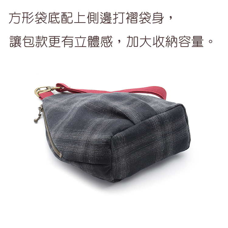 方形袋底配上側邊打褶袋身,讓包款更有立體感。