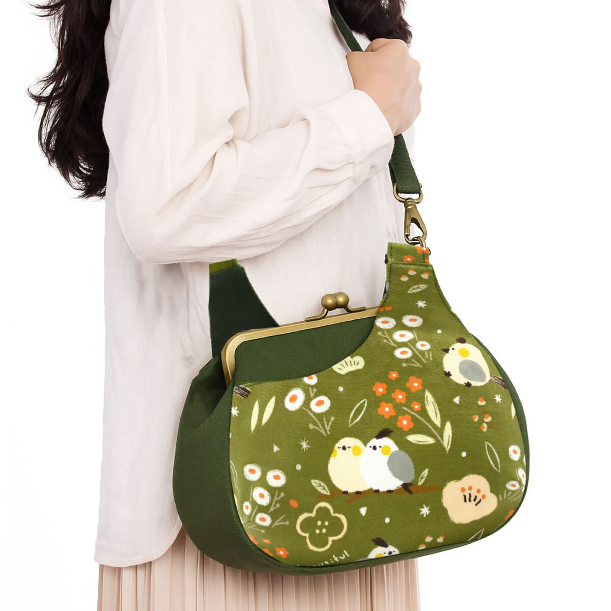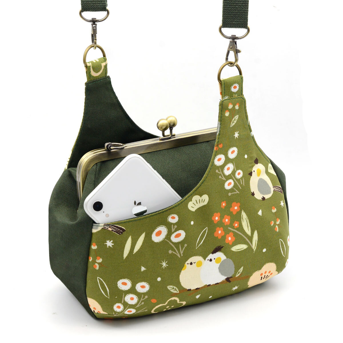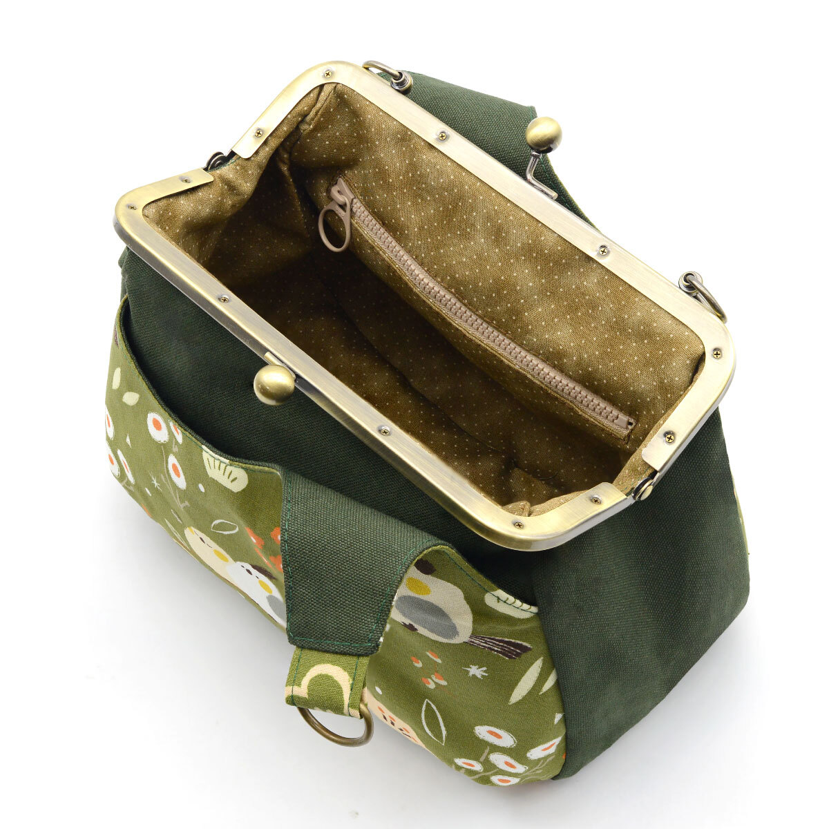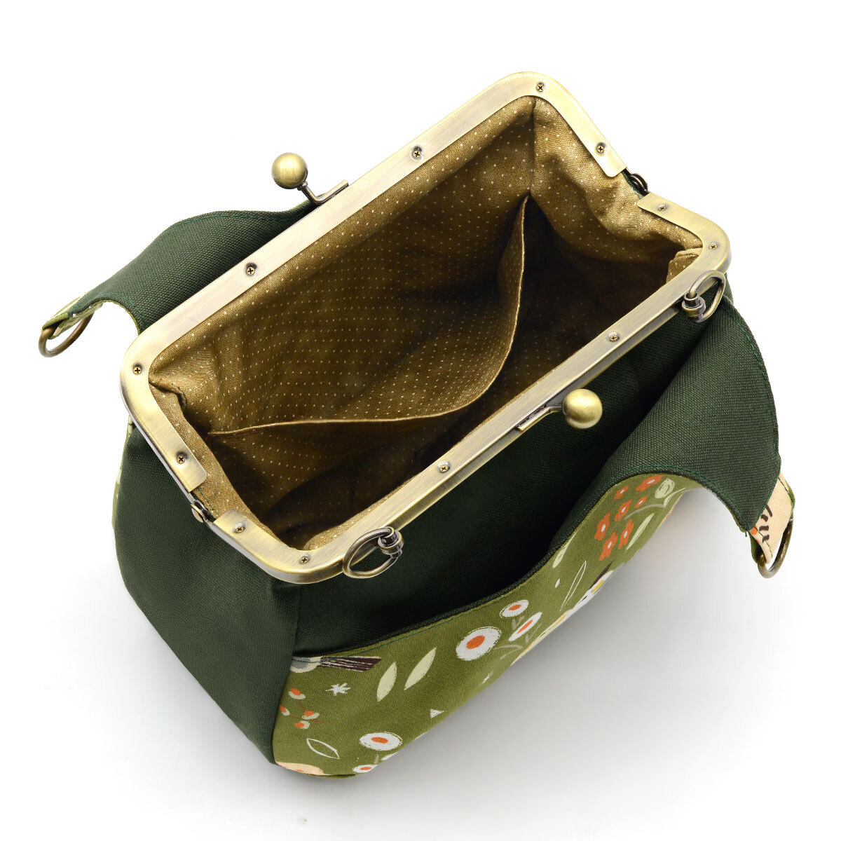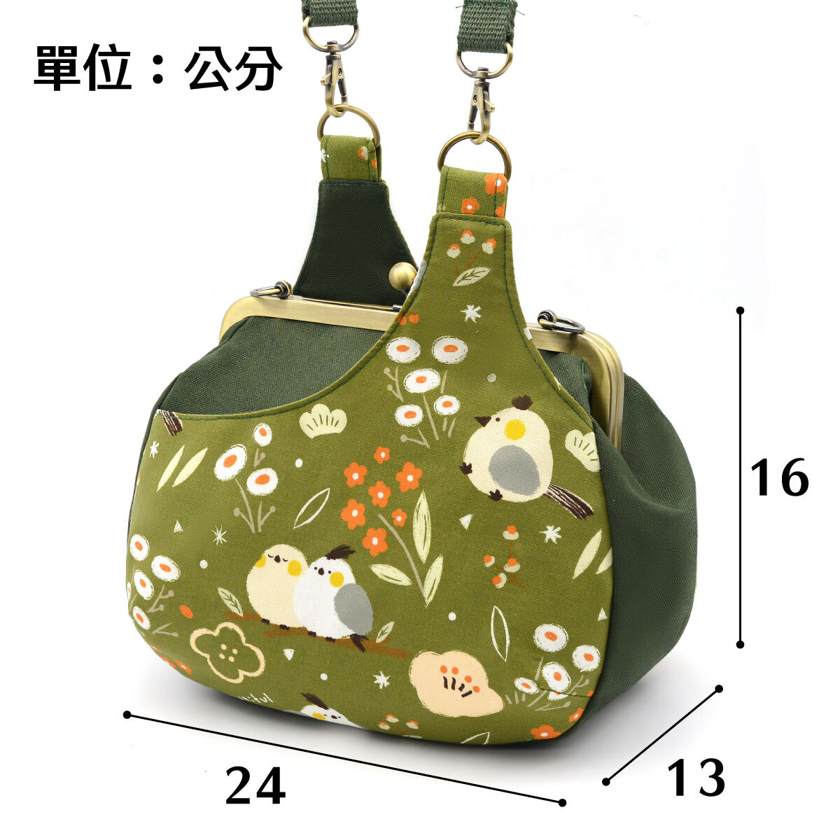前後片交錯的弧形口袋與背帶鉤環一體式的構造,讓口金包變得更立體,也有著圓潤的流線造型。