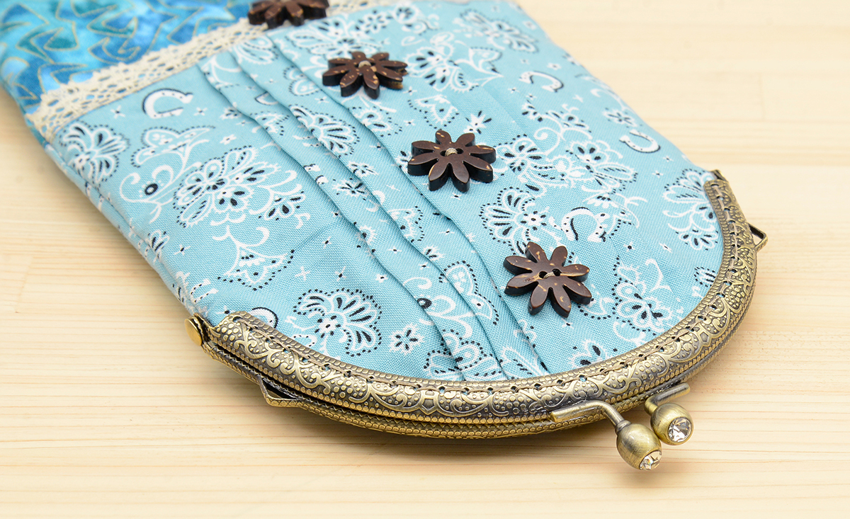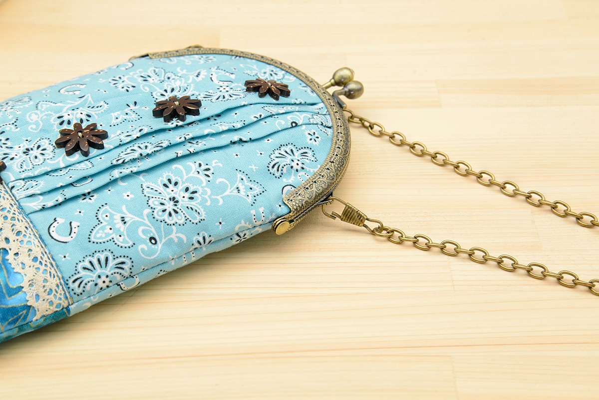 配件:12.5公分口金、造型釦、蕾絲、肩背鍊