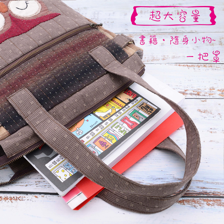 此材料包有用到貼布縫、輪廓繡、星止縫,讓我們透過線上影音教學,一起動手跟著老師來完成貓頭鷹肩背包。