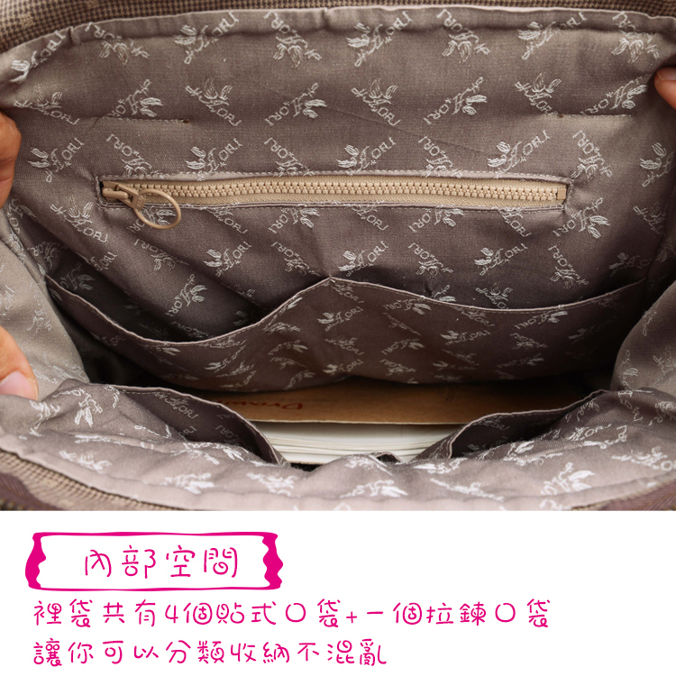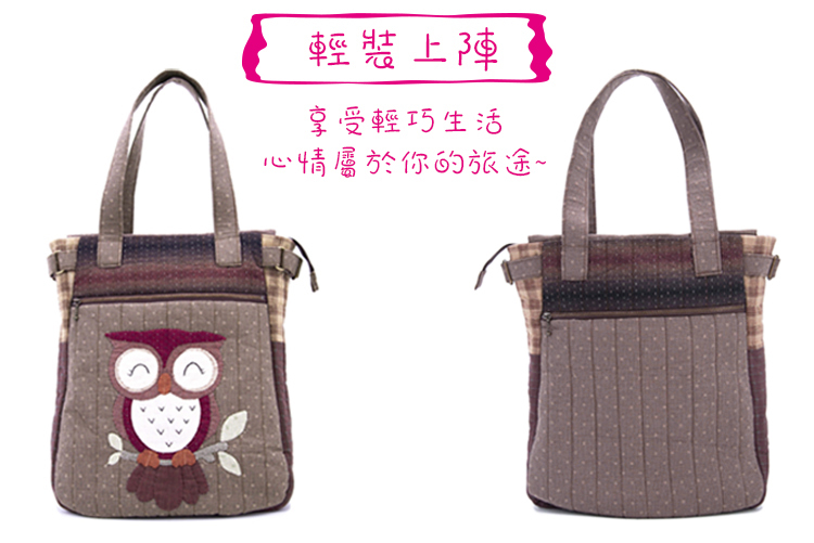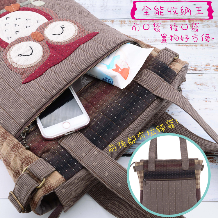 貓頭鷹是森林裡的守護神,她是智慧的象徵,肩背設計,前後有拉鍊口袋,內裡也有夾層,放A4文件收納空間充足。
