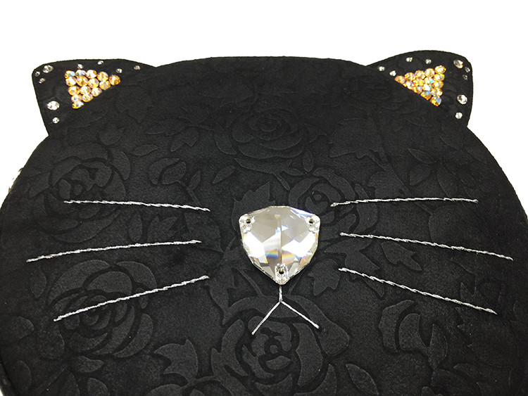 這次高貴貓的表布採用壓花皮質布料,採用玫瑰元素,使作品本身帶有神秘感,再加上施華洛世奇的水晶,兩著相加,帶出作品的個性與尊榮感