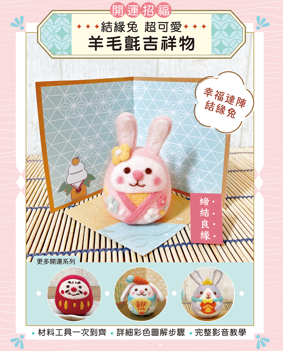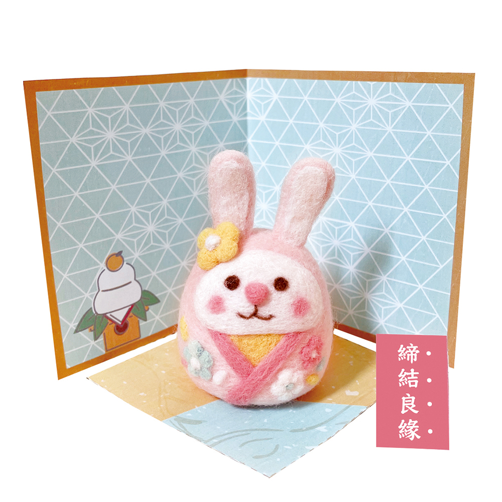 【羊毛氈超值全材料包套組——幸福達陣結緣兔】(完成尺寸:高約7公分,含耳朵)