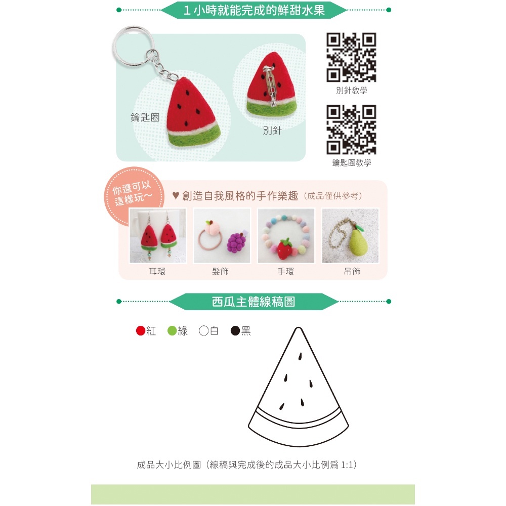 香甜多汁,咬一口就有消暑解熱放鬆心情的療癒效果。心情煩躁嗎?來戳一塊西瓜吧!加上別針或是鑰匙圈等隨身配件,保證立即降壓解憂!發揮創意,搭配耳環、髮圈、手環等飾品,創造自我新魅力!