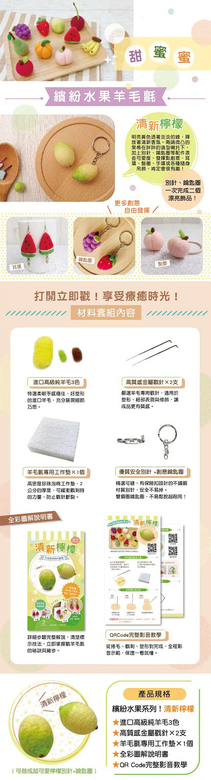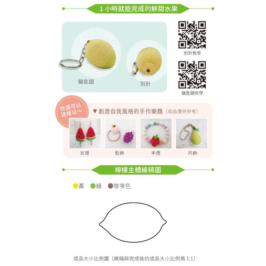 【羊毛氈超值全材料包套組—清新檸檬】(完成尺寸:高約4公分,不含吊飾)